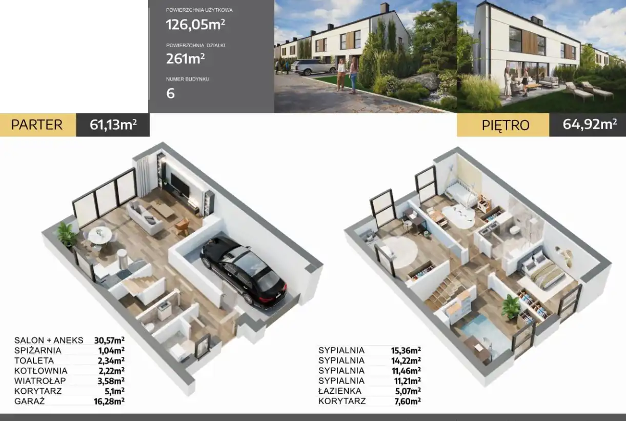 Nowa inwestycja w Przyłękach to synonim komfortu i jakości. Domy zostały zaprojektowane z dbałością o każdy detal, by zapewnić mieszkańcom funkcjonalne układy wnętrz, nowoczesne rozwiązania i trwałe materiały. To inwestycja, w której wygoda codziennego życia łączy się z solidnością wykonania i estetyką, która nie wychodzi z mody.
