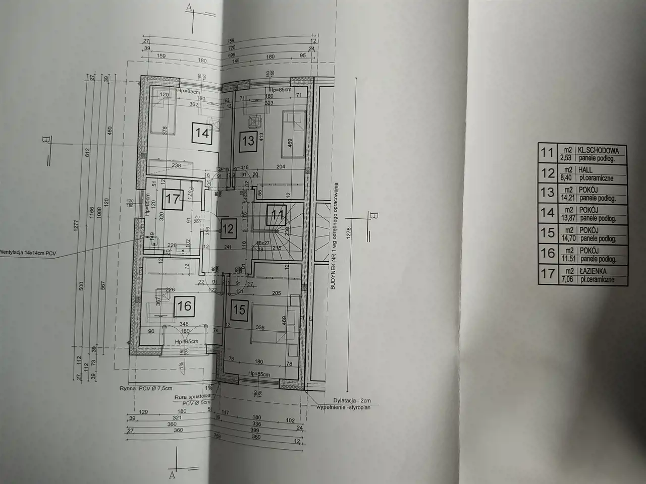 Powierzchnia zabudowy każdej części to 92,96m2.