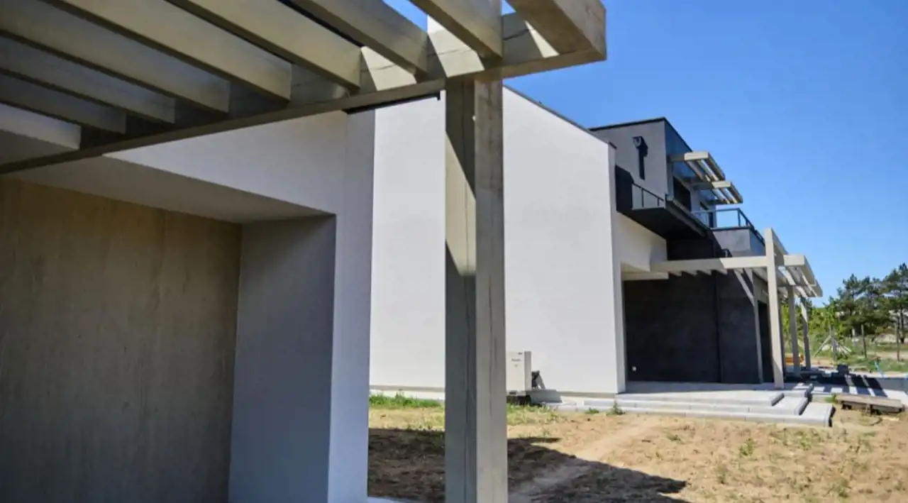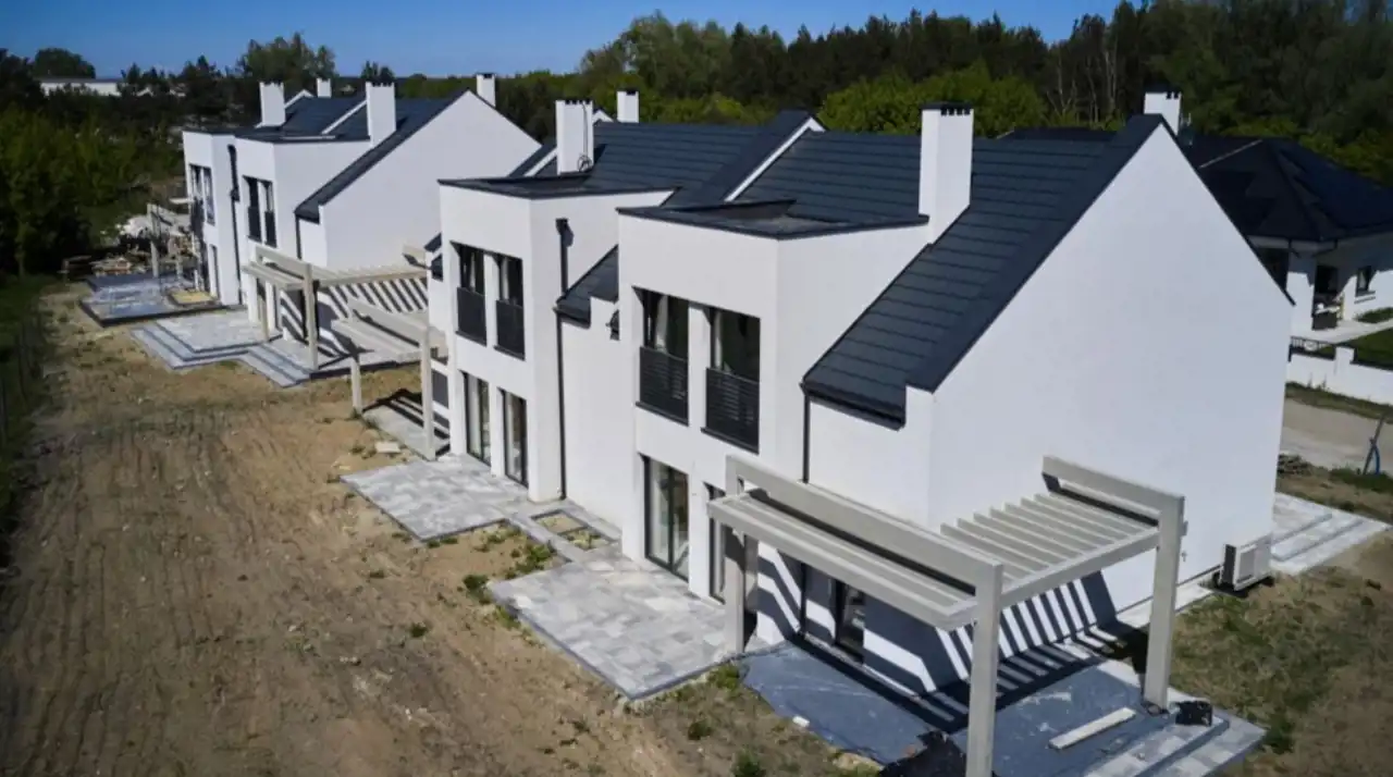 Dom w stanie deweloperskim posiadają wszystkie instalacje w tym pompę ciepła, wod-kan. elektryczną, TV, alarmowa, kominkową, internetową Na zewnątrz została ułożona kostka i taras ogrodowy. Dom posiada pergole drewniane tarasowe i wejściowe wykonane z bali. Na życzenie klienta za dodatkową opłatą może zostać zamontowane ogrodzenie wraz z bramą wjazdową i furtką (wzór do wyboru z kilku posiadanych przez dewelopera).