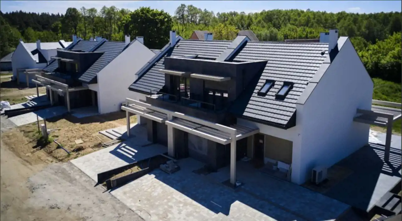 Dom, posiada odrębne wejście i jednostanowiskowy garaż. Dom wykonany jest z nowoczesnych materiałów. Jest to dom bliźniak, każdy z osobną działką i własną księgą wieczystą. Fasada domu wykonana jest ze spieków kwarcowych i gresów. Dom ogrzewany jest pompą ciepła marki Panasonic.