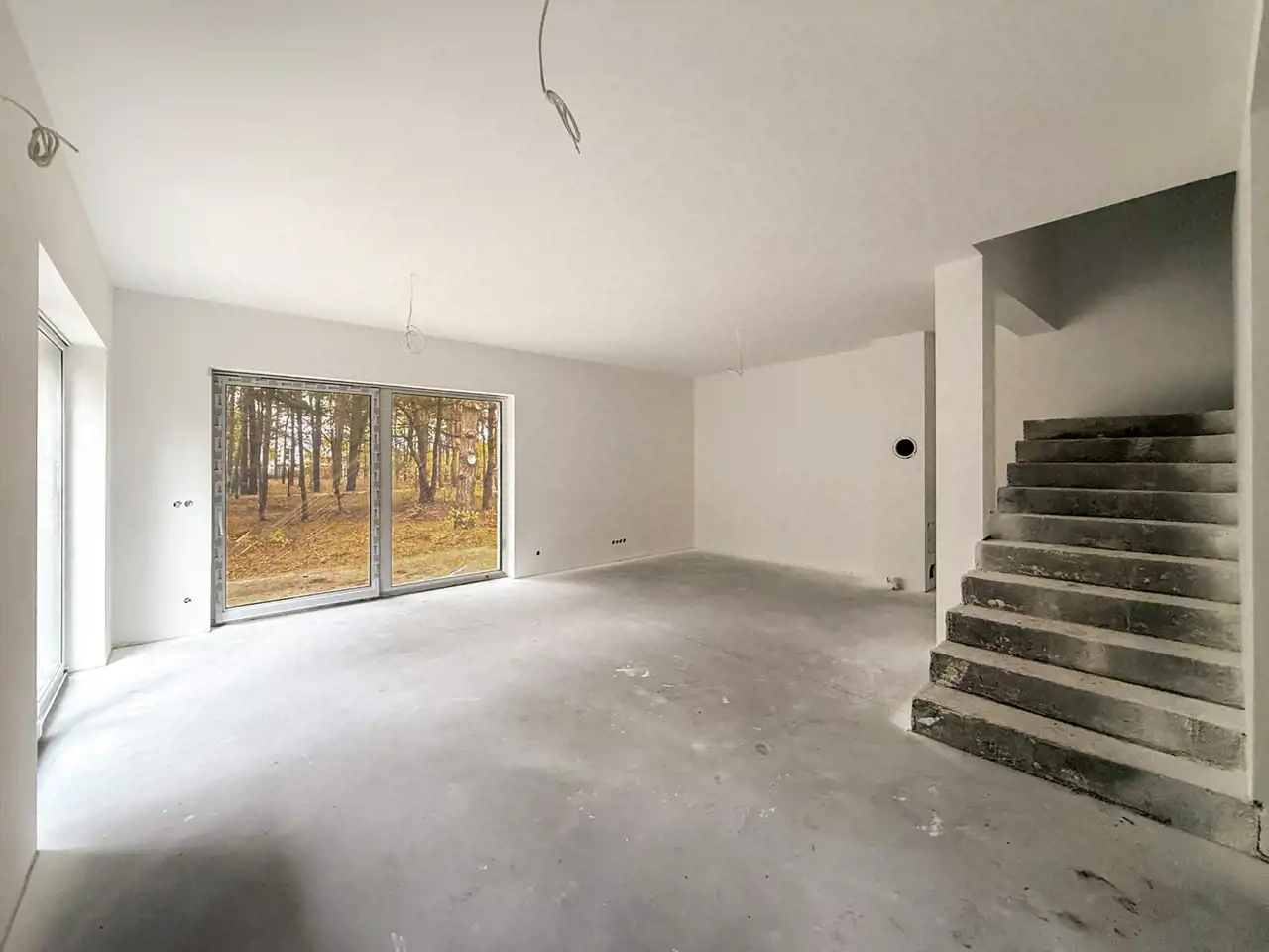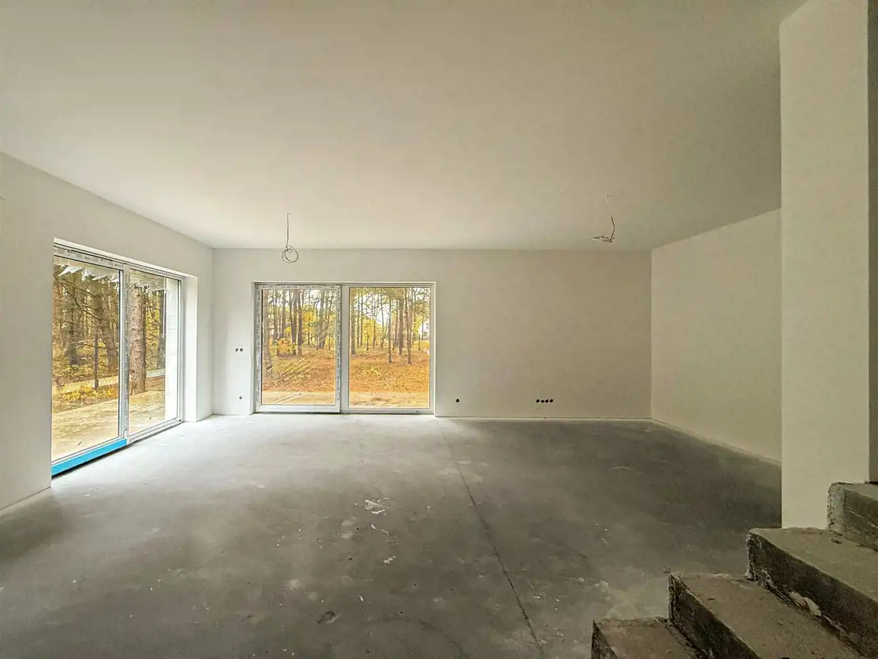 - W salonie znajdują się panoramiczne okna HS z widokiem na las