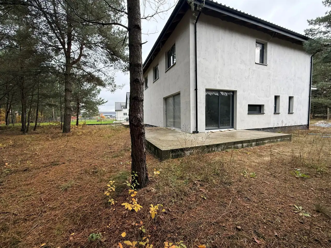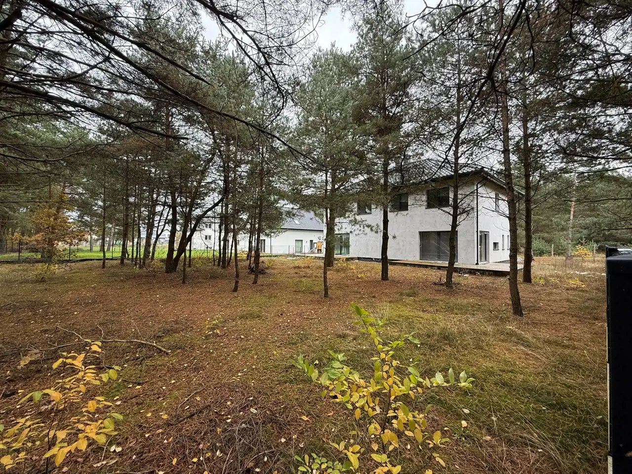 Dom znajduje się w lesie sosnowym, co przez piękne duże okna czuć we wnętrzu.