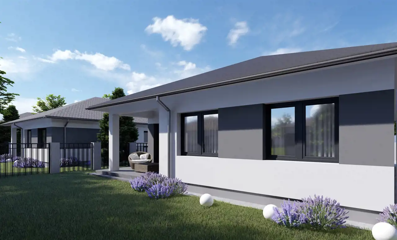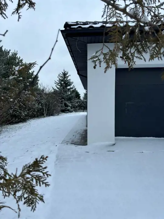 Dom w stanie deweloperskim całkowicie skończony z zewnątrz tzn. elewacja, podbitka.