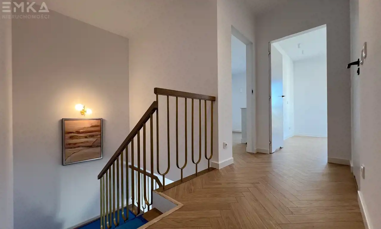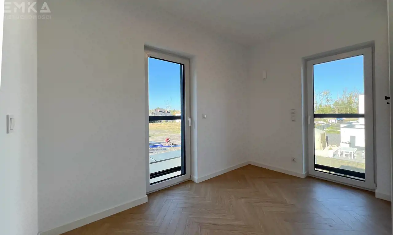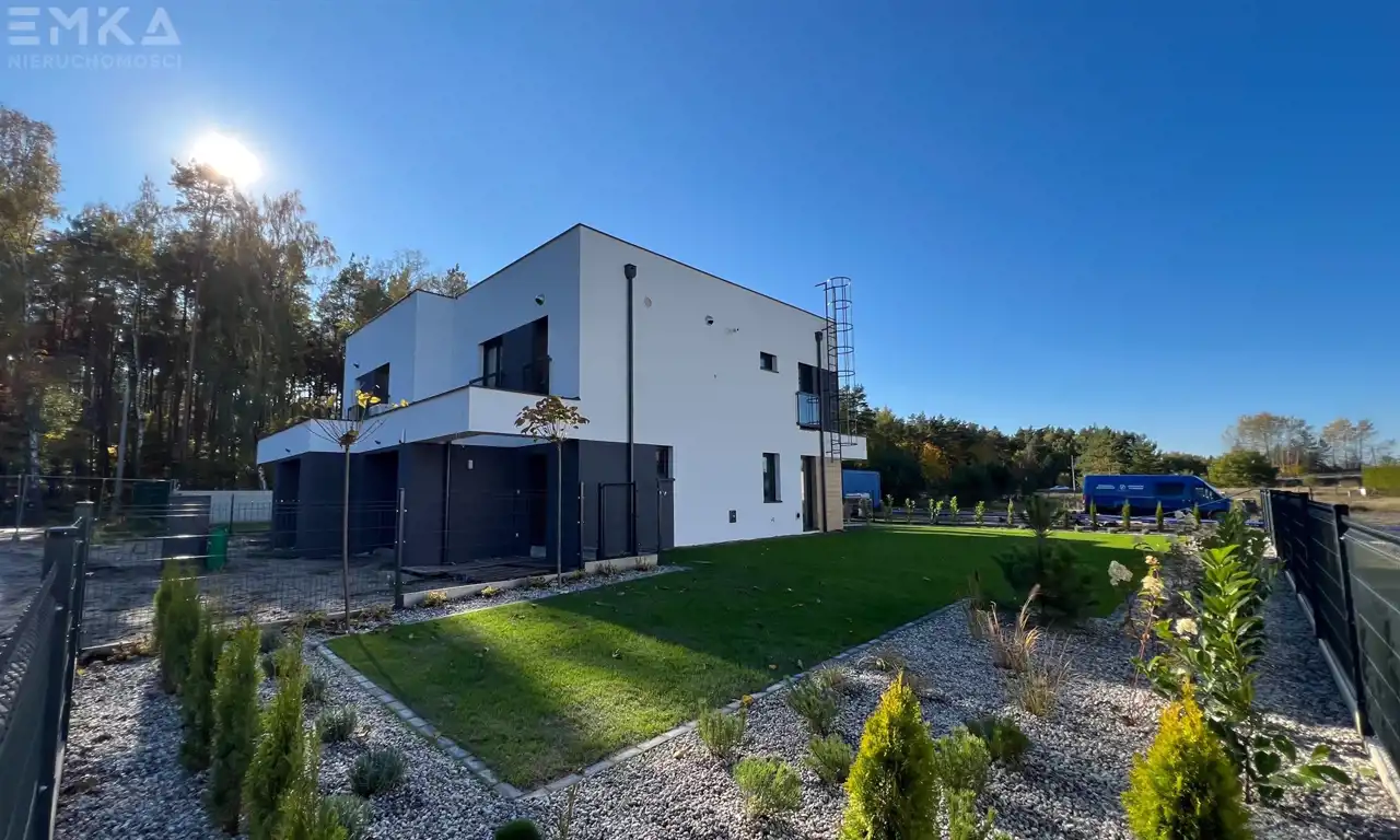 Energooszczędność i komfort: ogrzewanie podłogowe w całym domu, rekuperacja, fotowoltaika 5–6 kW, dach pokryty białą farbą redukującą nagrzewanie, instalacja wodno-kanalizacyjna przygotowana do zmiękczacza wody oraz systemy podlewania ogrodu,
