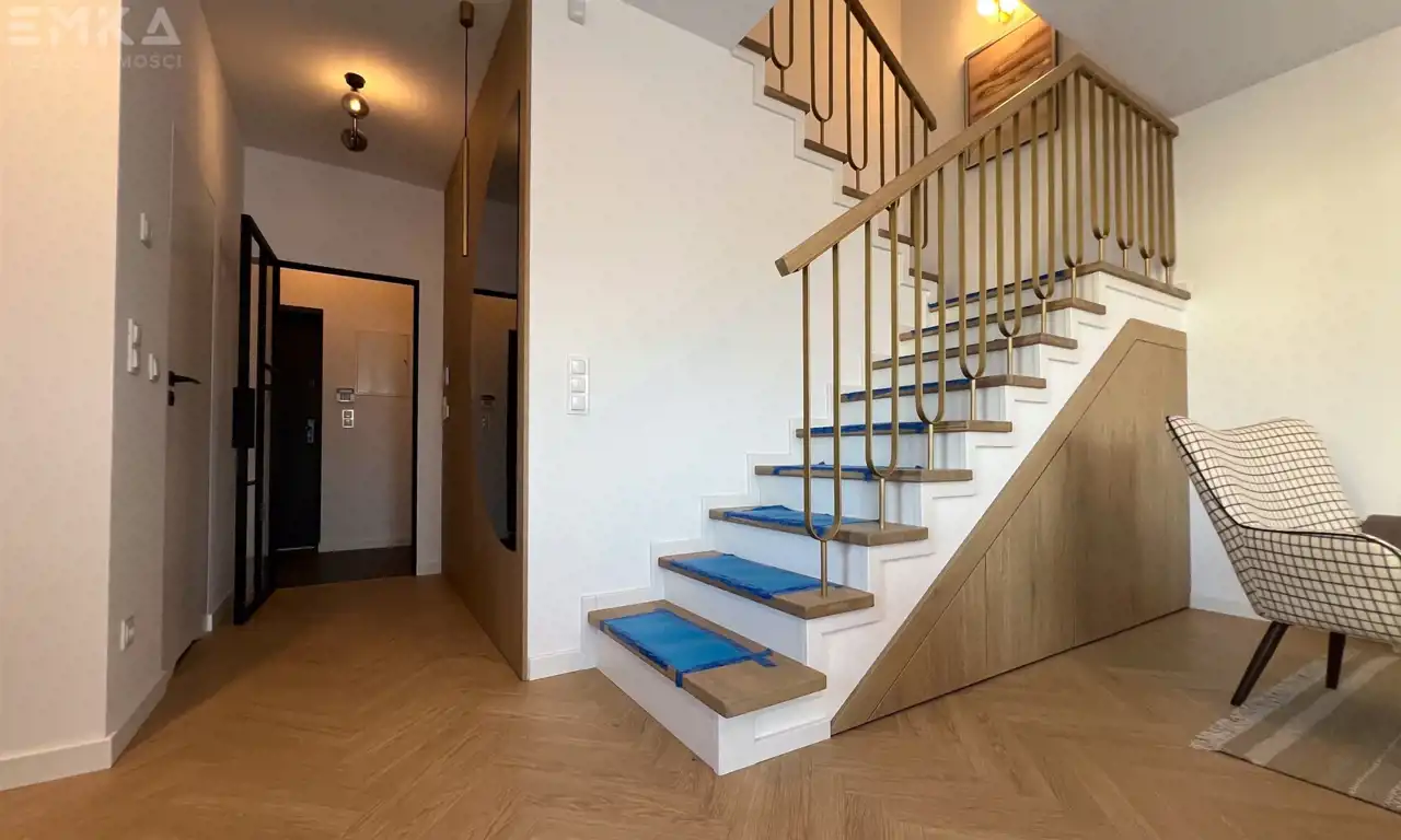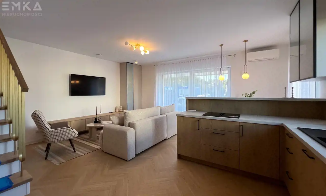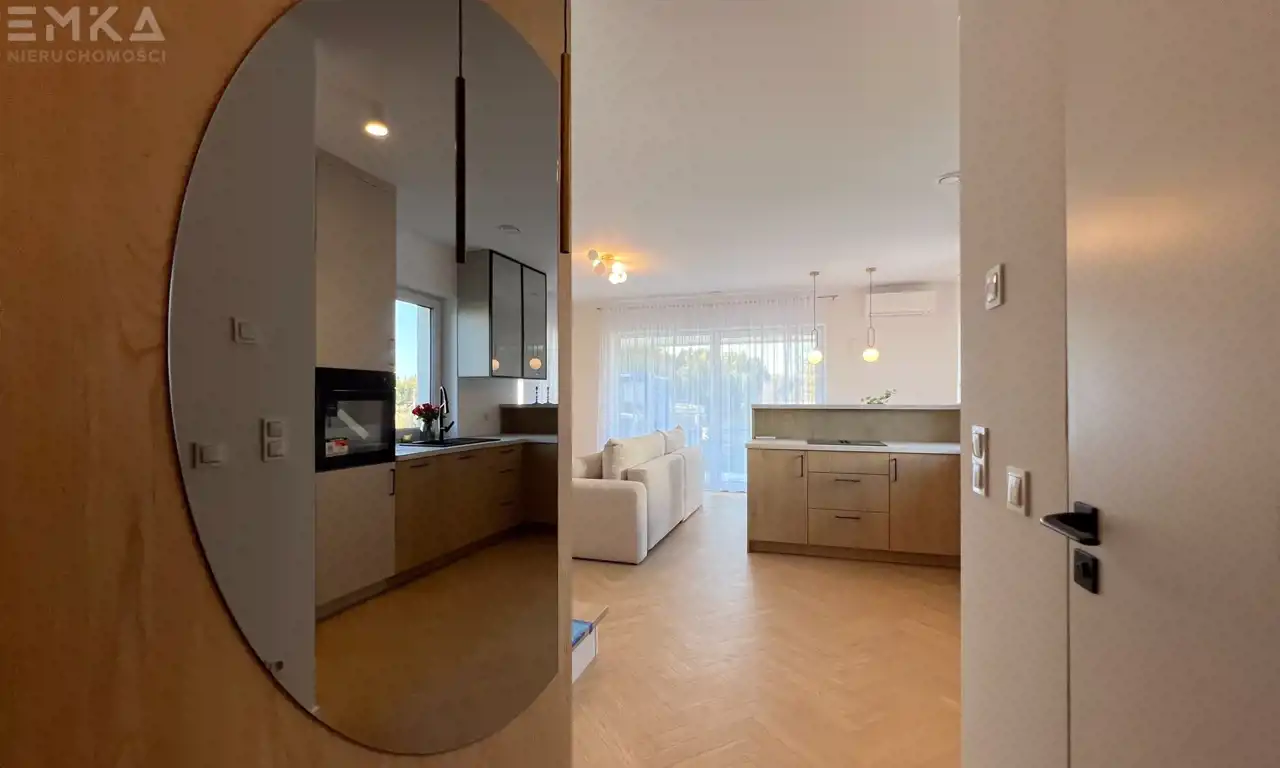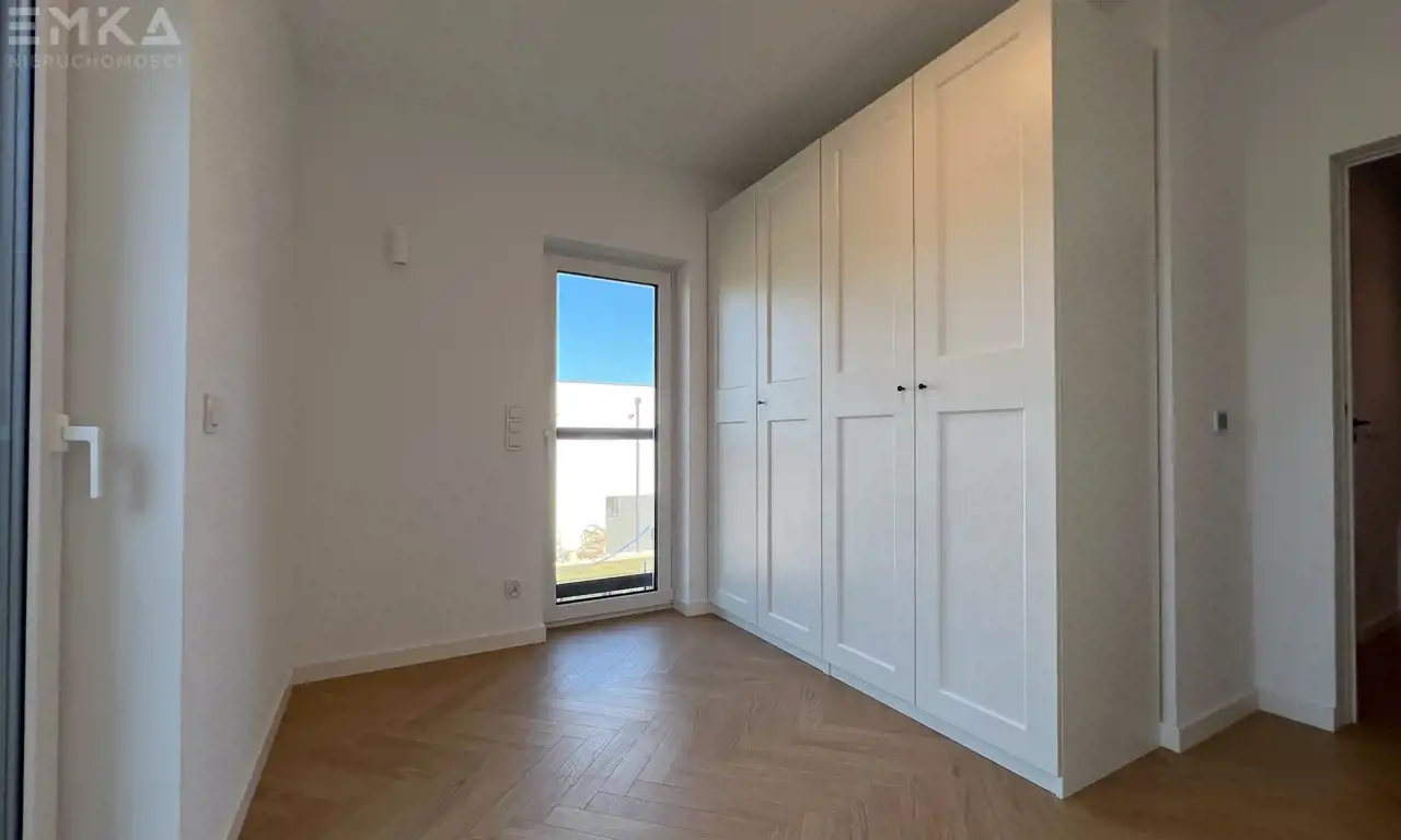 Energooszczędność i komfort: ogrzewanie podłogowe w całym domu, rekuperacja, fotowoltaika 5–6 kW, dach pokryty białą farbą redukującą nagrzewanie, instalacja wodno-kanalizacyjna przygotowana do zmiękczacza wody oraz systemy podlewania ogrodu,