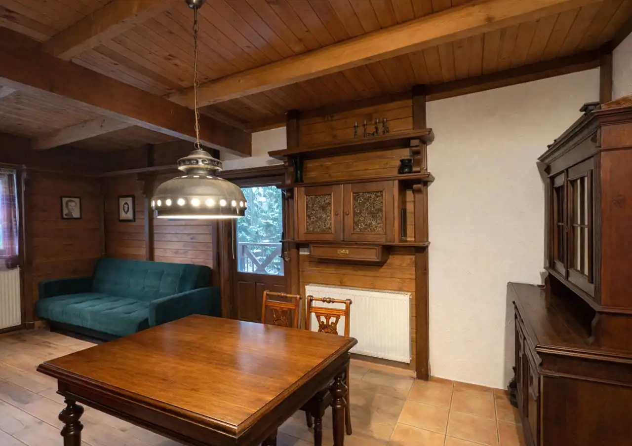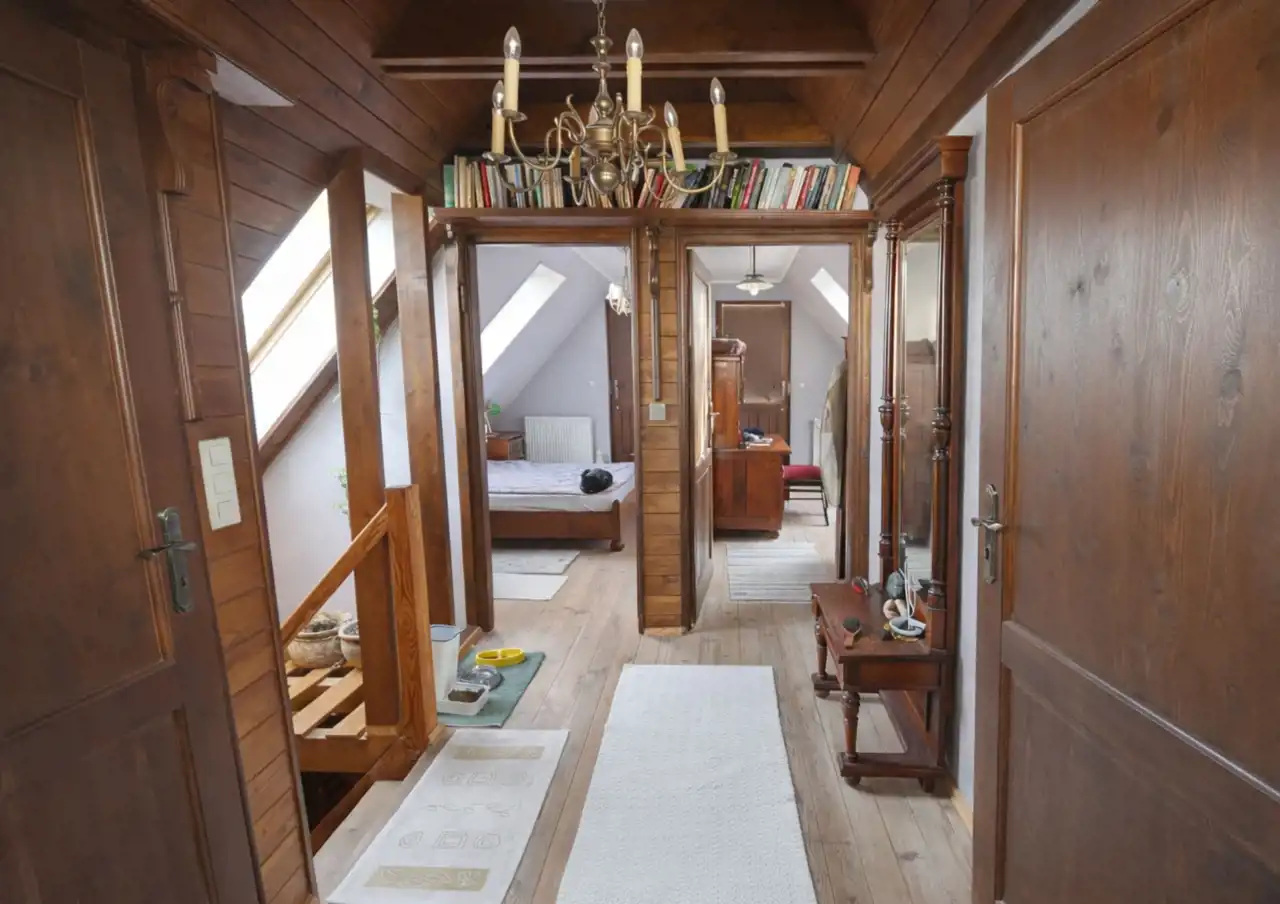 Dom wolnostojący o powierzchni użytkowej 91,20 m², wybudowany w 2007 roku w technologii szkieletowej z drewna, oferuje 5 pokoi, w tym 4 sypialnie oraz 2 łazienki. Wnętrza są funkcjonalne, jasne i częściowo umeblowane. Ogrzewanie oraz ciepła woda z pieca na pellet, dodatkowo w salonie znajduje się kominek. Drewniane okna nowego typu, bardzo dobry stan techniczny i wysoki standard wykończenia.
