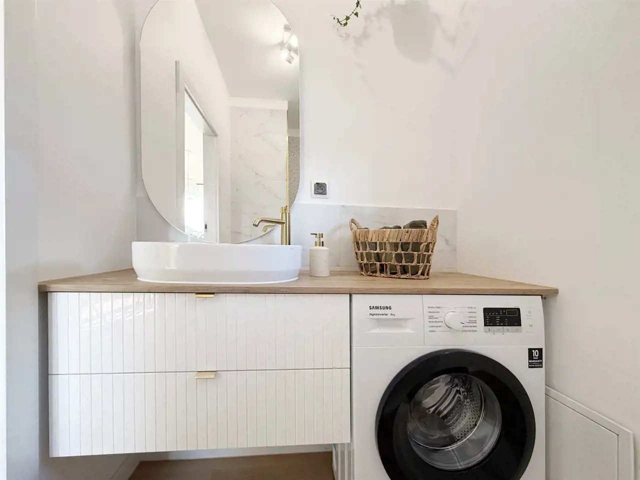 sprzęt AGD: pralka, lodówka, płyta indukcyjna, piekarnik, zmywarka