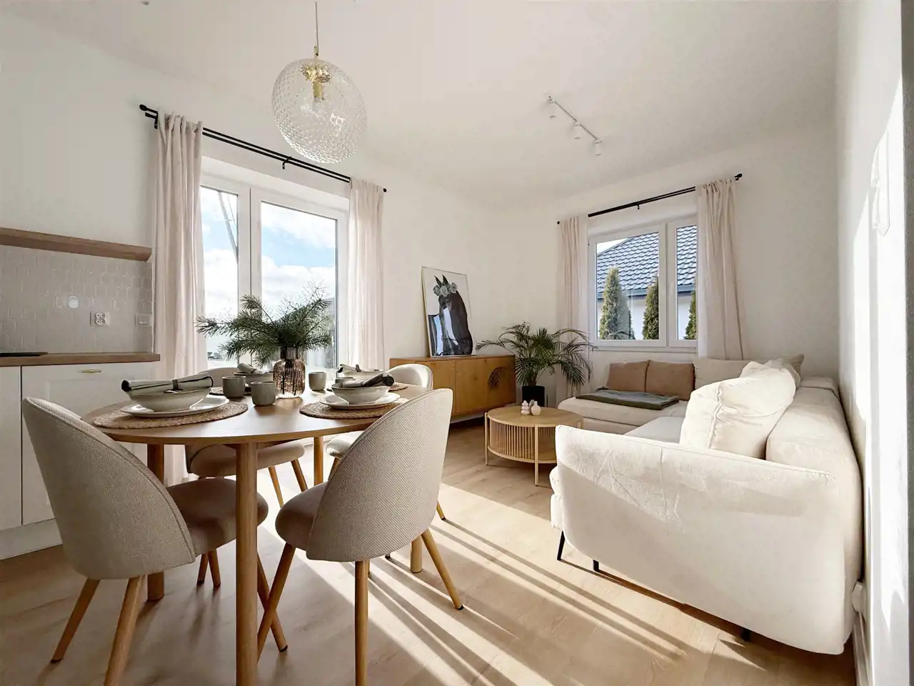 Dom stanowi alternatywę dla mieszkania w bloku – brak wspólnych ścian z sąsiadami, własna działka oraz niskie koszty utrzymania.