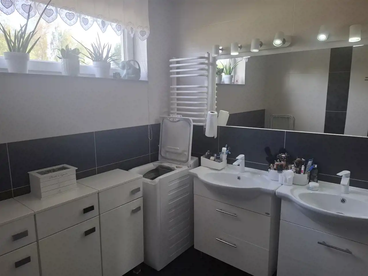 W piwnicy znajduje się również pomieszczenie, które obecnie spełnia rolę garderoby ale można zmienić jego funkcje. No i teraz najważniejsze również w części piwnicznej jest bardzo duży prawie 40 m2 pokój, który może stać się męską jaskinią, pokojem gier i zabaw lub własną siłownią. Koncepcji na zaaranżowanie tej przestrzeni jest bardzo dużo.