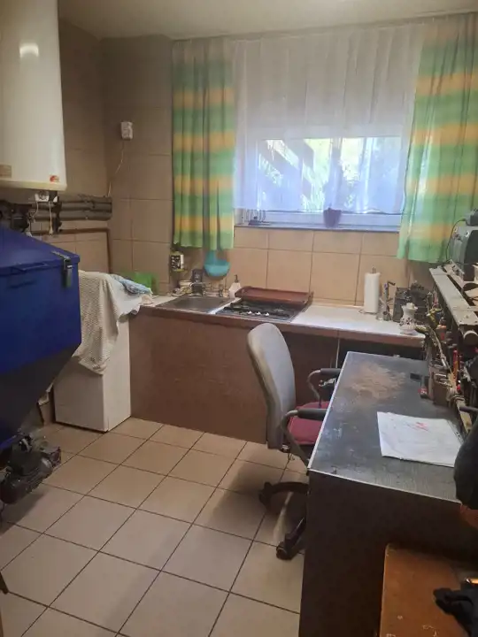 W części piwnicznej do dyspozycji jest kotłownia w całości wyłożona glazurą, bardzo zadbana i doświetlona oknem z doprowadzoną wodą, garaż mogący pomieścić dwa samochody (JEDEN ZA DRUGIM).