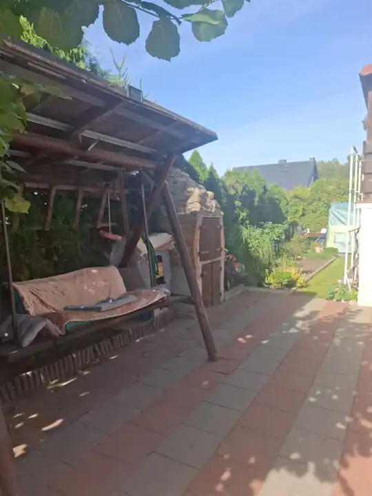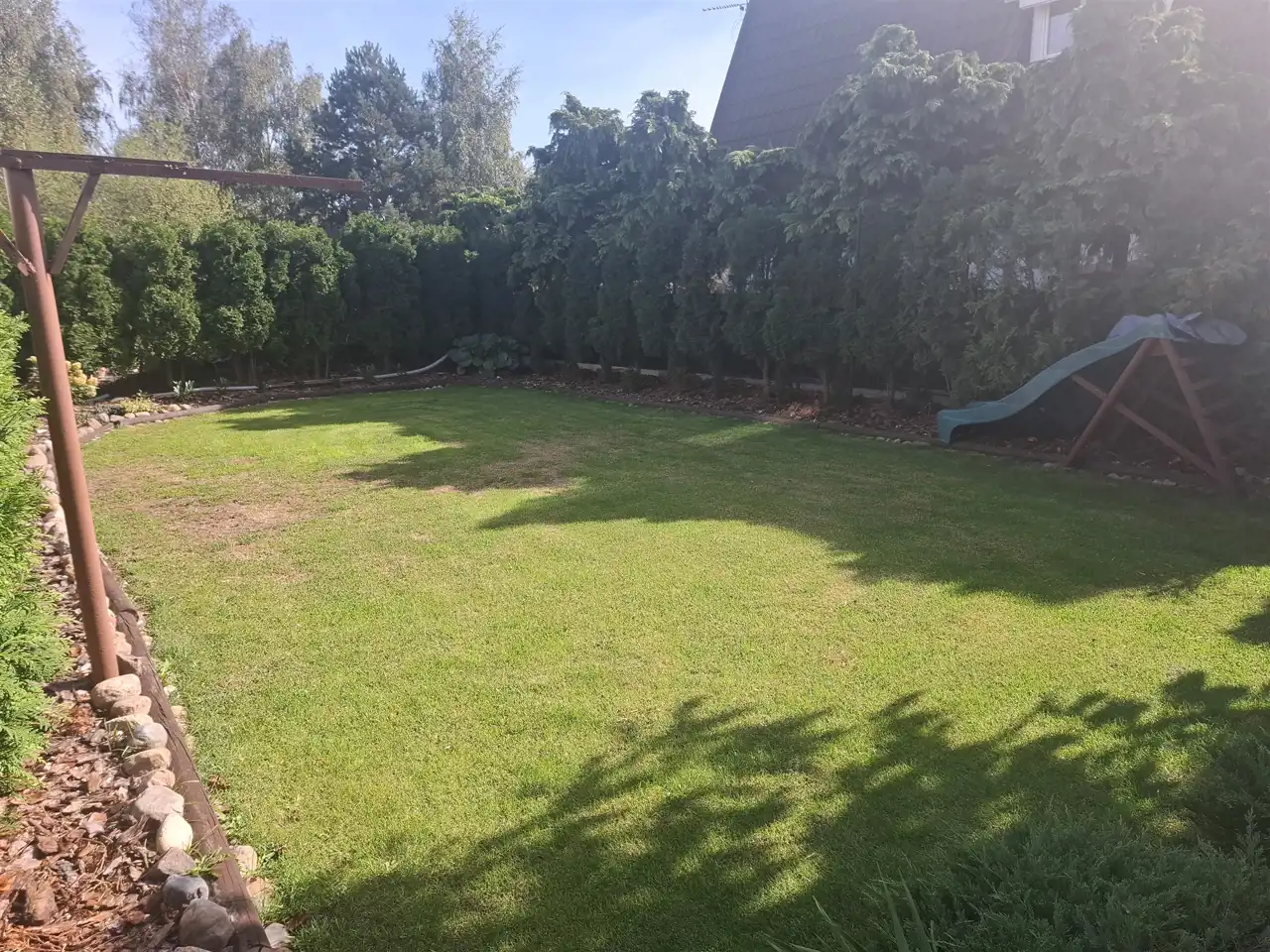 Kwintesencją tej zadbanej nieruchomości jest ogród, w którym nowy nabywca już nic nie musi robić. wystarczy się nim delektować. Jest tu przestrzeń do rekreacji i wypoczynku, grill z wędzarnią, bujawka do odpoczynku oraz mały zgrabny kurniczek z własnymi kurkami. Czyż to nie frajda mieć swoje własne ekologiczne jajeczka. Zieleń w ogrodzie jest dopieszczona i tak zaaranżowana że ma się nieziemskie poczucie intymności.
