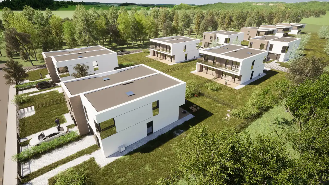 To nowoczesne osiedle domów typu bliźniak, które oferuje doskonałe rozwiązania dla osób poszukujących harmonii między nowoczesnością a pięknem otaczającej przyrody. Domy, które łączą funkcjonalność z estetyką.