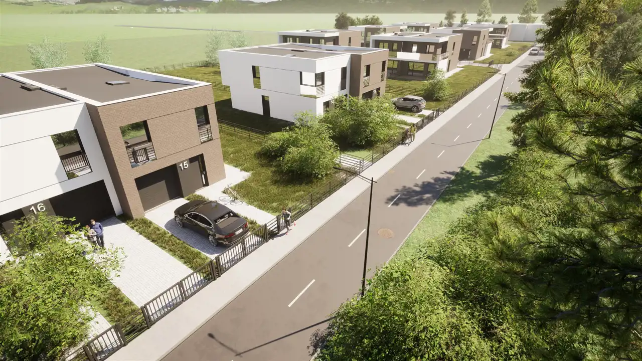 To nowoczesne osiedle domów typu bliźniak, które oferuje doskonałe rozwiązania dla osób poszukujących harmonii między nowoczesnością a pięknem otaczającej przyrody. Domy, które łączą funkcjonalność z estetyką.