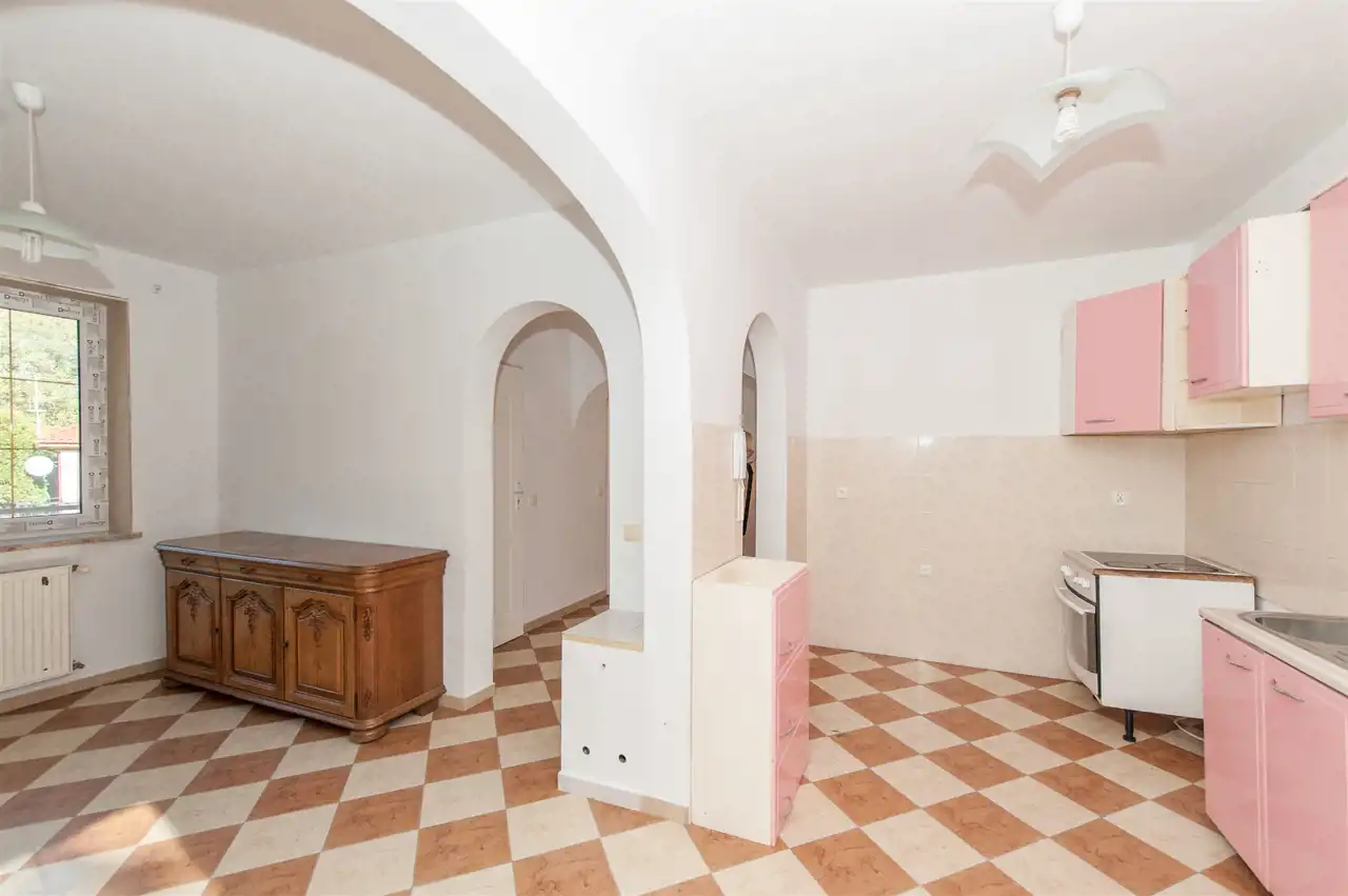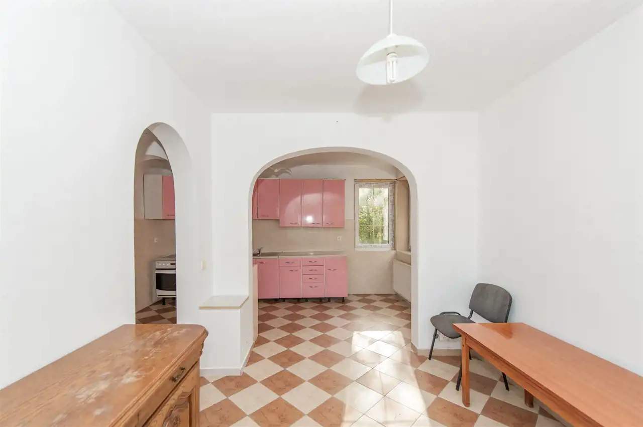 Na parterze zejście do piwnicy, w której znajduję się piec olejowy oraz pomieszczenia mieszkalne do własnej aranżacji wedle preferencji nowych nabywców.
