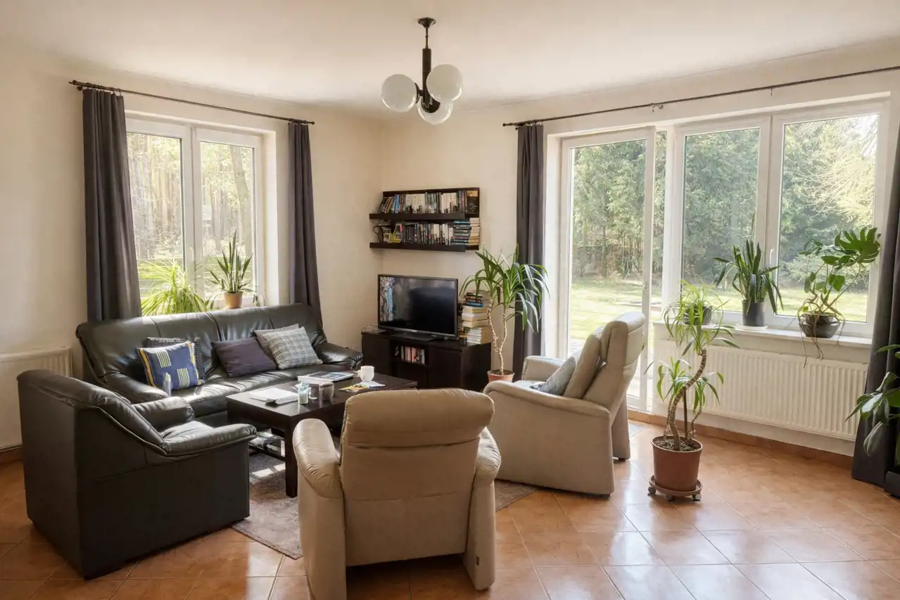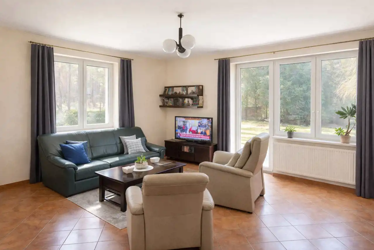 Ogromnym atutem tej oferty jest piękna lokalizacja — dom położony jest w otoczeniu terenów leśnych, z wyjątkowym, naturalnym klimatem i widokiem na zieleń. To miejsce idealne dla osób ceniących ciszę, spokój i kontakt z naturą.