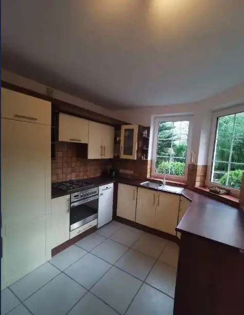 Kuchnia całkowicie wyposażona w niezbędne sprzęty tj. zmywarka, piekarnik, lodówka, płyta gazowa.