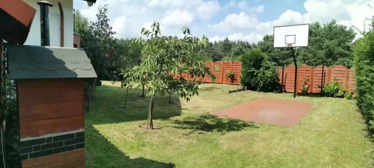 Polecam na sprzedaż dom niepodpiwniczony, wolnostojący dom jednorodzinny z garażem, pomieszczeniem gospodarczo-ogrodniczym, wiatą na drewno kominkowe, wędzarnią, boiskiem do koszykówki, oczkiem wodnym, kojcem dla psa. Bogato zagospodarowany ogród z nietuzinkowymi roślinami ozdobnymi oraz z drzewami i krzewami owocowymi