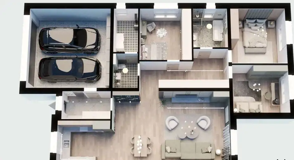 W cenie uwzględniono szereg udogodnień zwiększających komfort i bezpieczeństwo mieszkańców, takich jak pompa ciepła, ogrzewanie podłogowe w całym budynku, wentylacja mechaniczna z rekuperacją, rolety antywłamaniowe sterowane elektrycznie oraz brama garażowa z napędem. Dodatkowym atutem jest przygotowane podejście pod klimatyzację w salonie oraz możliwość wprowadzania zmian bez ponoszenia dodatkowych kosztów na etapie budowy.