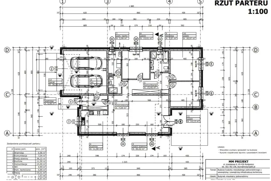 Garaż w bryle budynku na dwa stanowiska: 34,57 m²