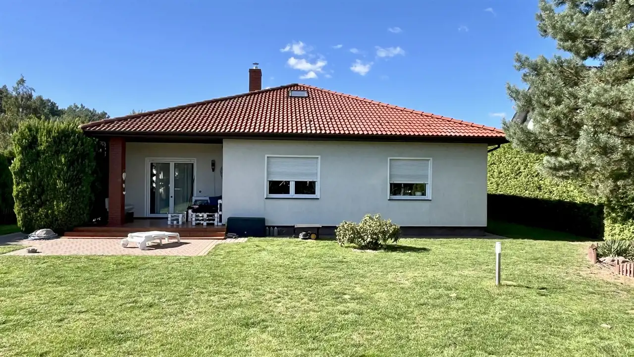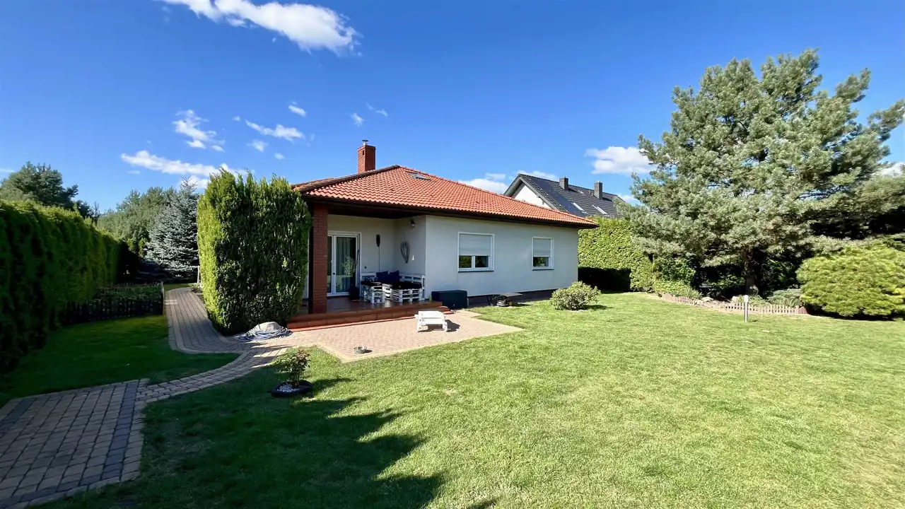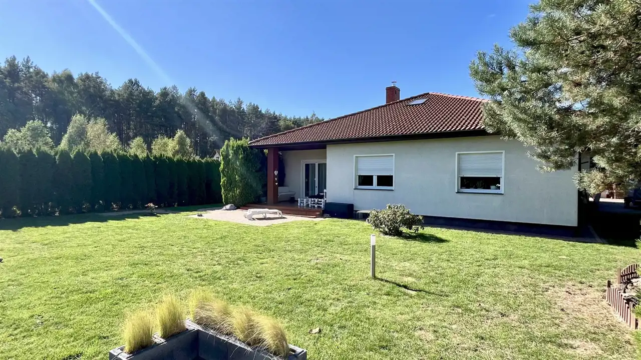 Wolnostojący dom parterowy z poddaszem użytkowym wykończony w 2021r, położony na pięknie zagospodarowanej działce o pow. 933m2.