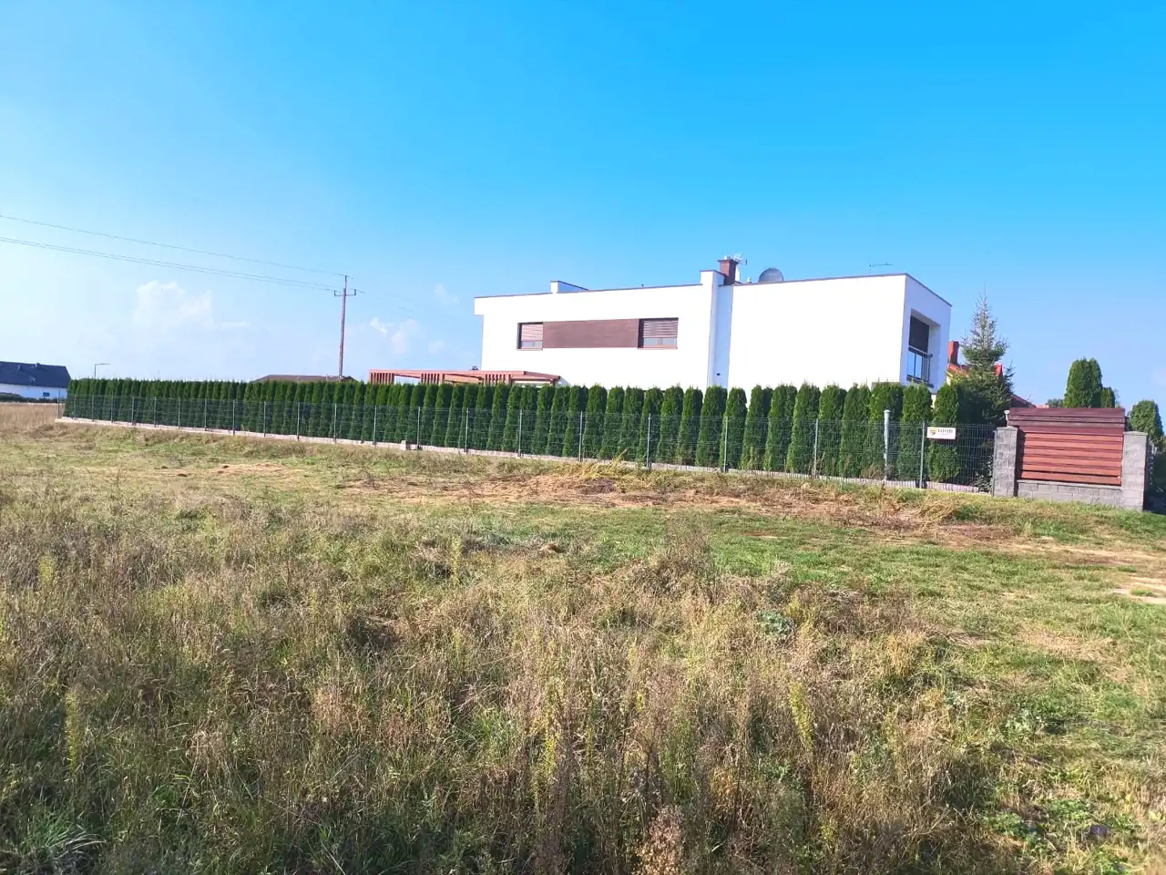 Wszystkie media: prąd, woda, gaz i kanalizacja w drodze przy działce.
