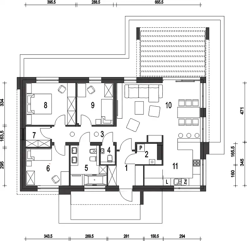 budynek mieszkalny jednorodzinny w układzie zabudowy wolno stojącej wraz z wewnętrzną instalacją gazu w budynku, zewnętrzną instalacją gazu oraz wewnętrzną elektroenergetyczną linią zasilającą WLZ