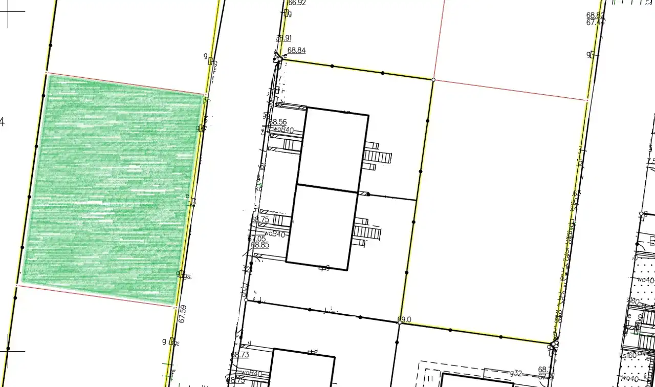 Działka w kształcie prostokąta. Wydane zostały warunki zabudowy i zagospodarowania terenu. Media: prąd, gaz, woda w drodze. Nieruchomość jest niezabudowana.