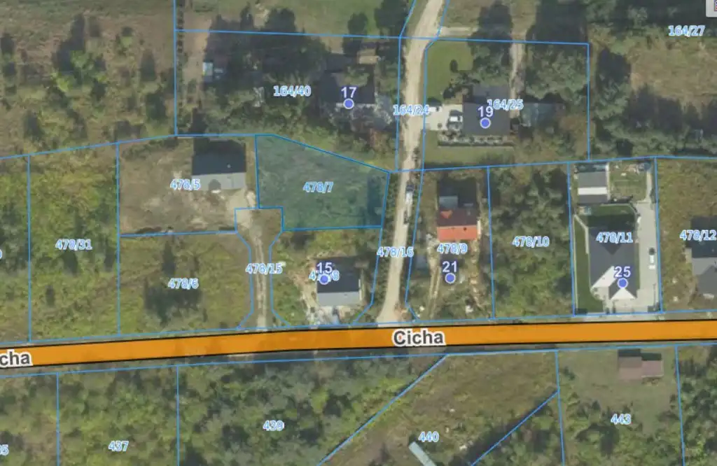Biała Posesja Nieruchomości poleca działkę budowlaną o powierzchni 844 m2 w miejscowości Lisi Ogon przy ulicy Cichej.