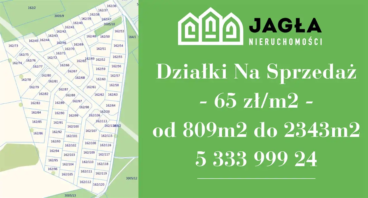Do Państwa dyspozycji ok.70 działek od 809m2 do 2343m2