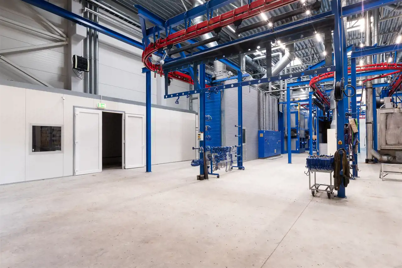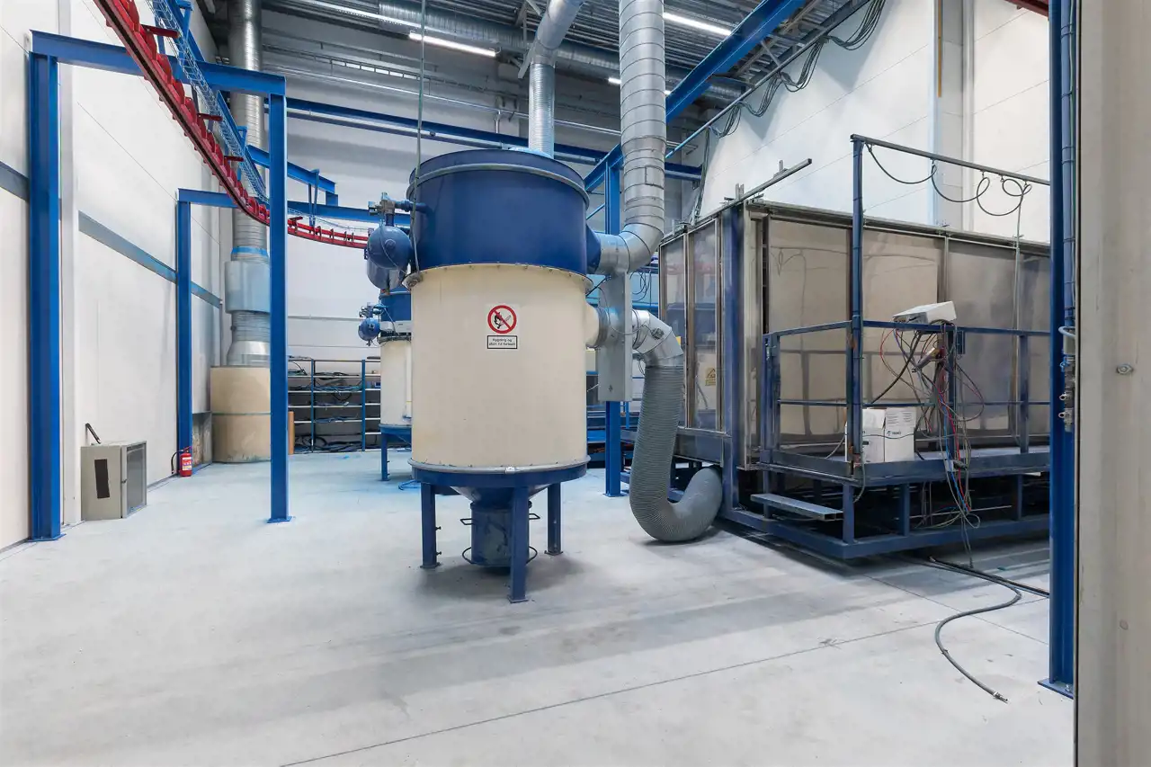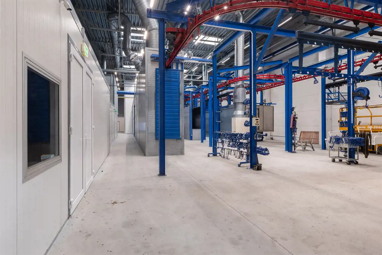 W hali suwnica o nośności 8t. Wysokość hali od 8- 10,5 m. W obecnej chwili w hali linia malowania proszkowego, która zostanie zdemontowana i nie podlega sprzedaży. Gęstość obciążenia ogniowego 500MJ/m2.