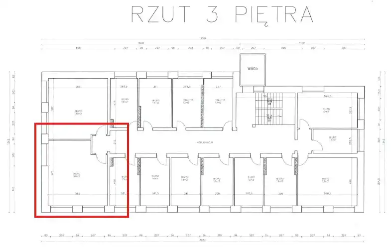 Do poszczególnych pomieszczeń wejście z holu głównego. W budynku znajduje się winda. Przy budynku miejsca parkingowe niepłatne.