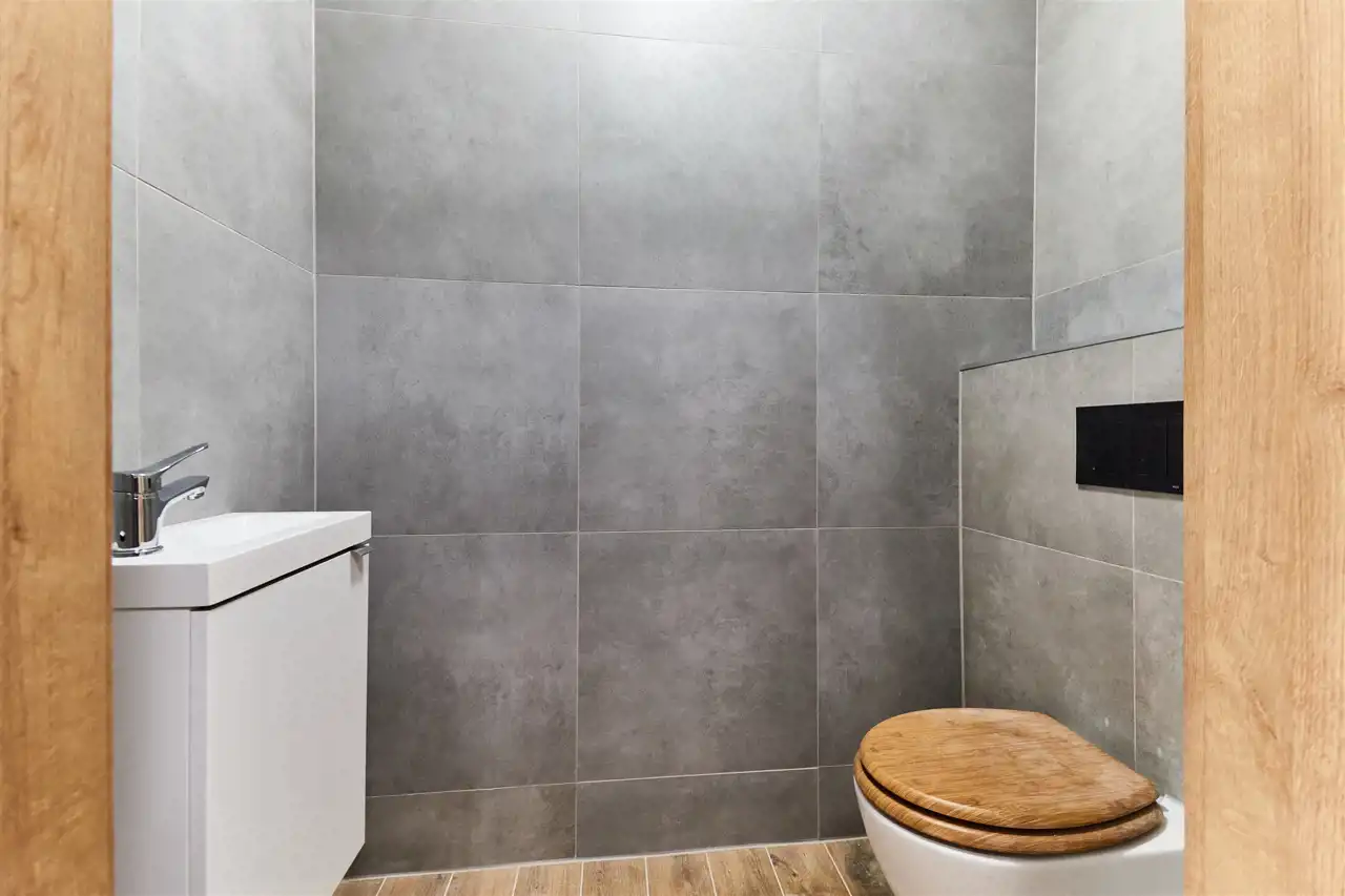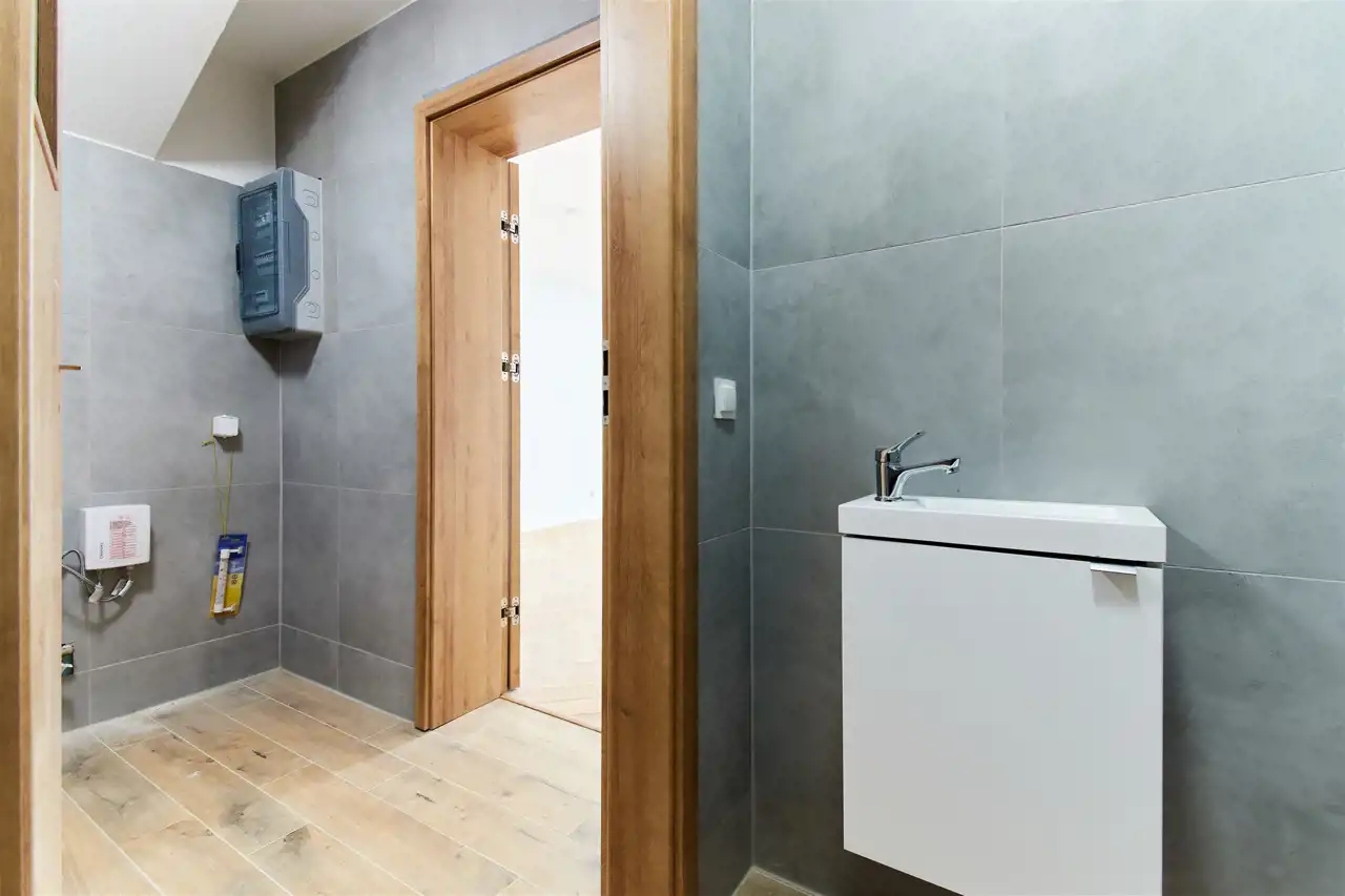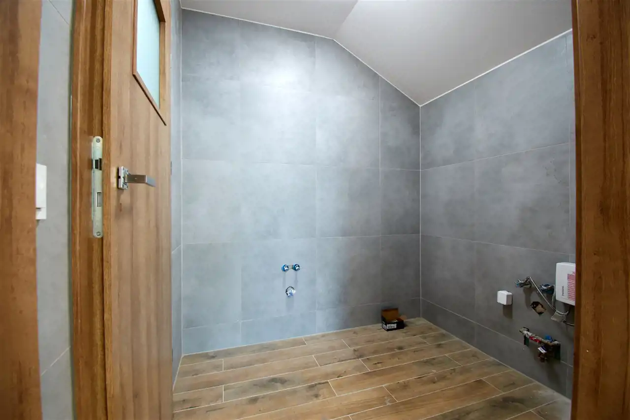 - Podłogi: wylewka betonowa; kafle w łazience;