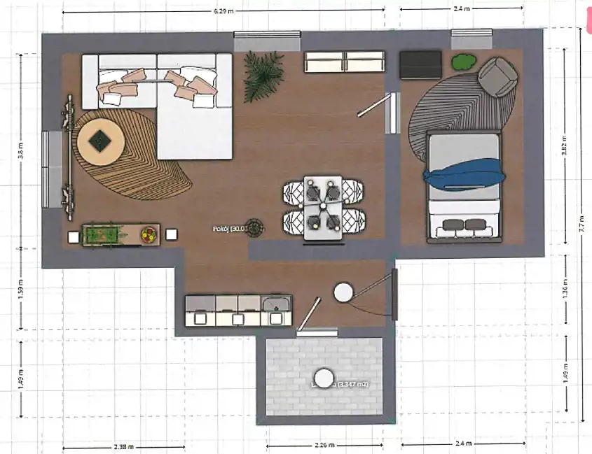 - Charakterystyka mieszkania 39.18 m2, 2 pokoje
