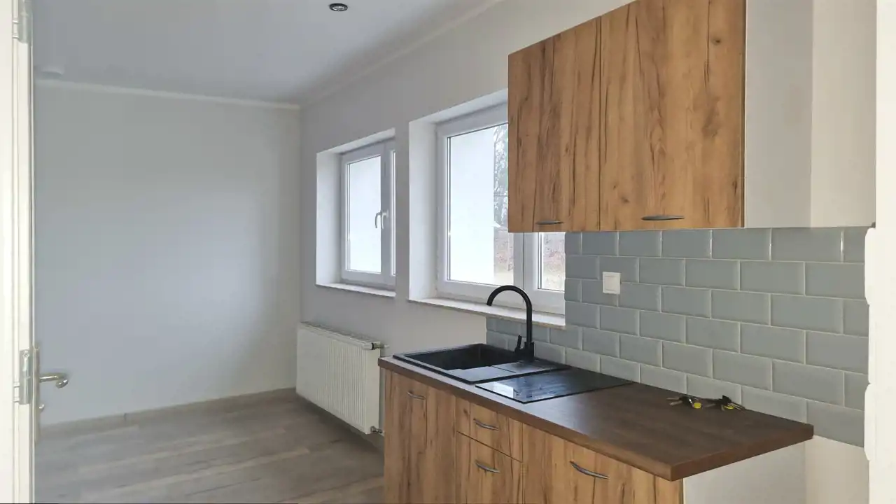 • zabudowa kuchenna, nowa płyta indukcyjna, zlewozmywak, lodówka