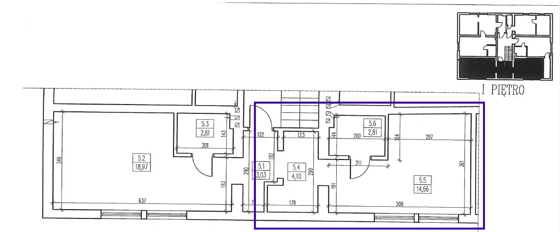 Nieruchomość o powierzchni 46,38m2 składa się z dwóch oddzielnych mieszkań: