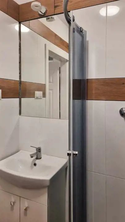 Nowoczesne wykończenie i spójna kolorystyka tworzą komfortową przestrzeń idealną pod wynajem.