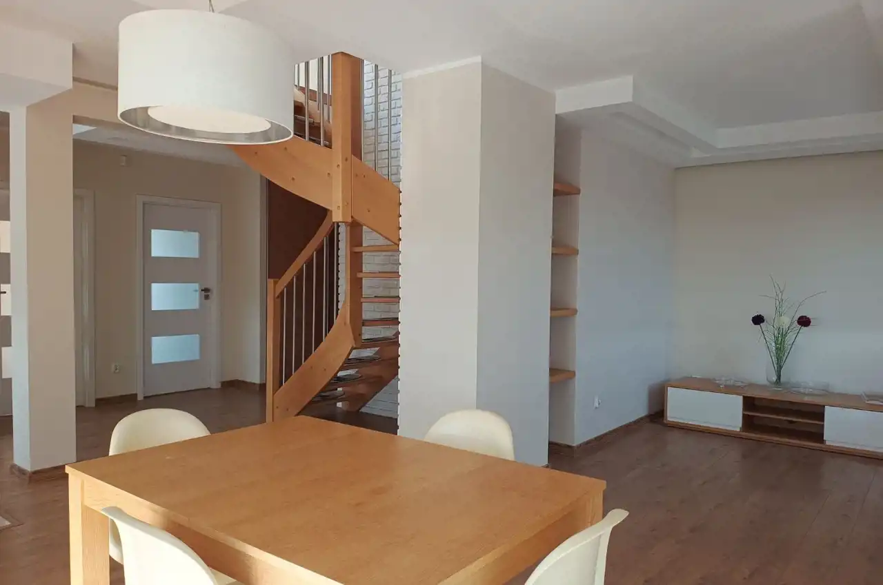 Idea Nieruchomości przedstawia mieszkanie w budynku szeregowym w Zielonce gmina Białe Błota Tętniąca energią okolica sprawia, że mieszkańcy zyskują swobodny dostęp zarówno do centrum Bydgoszczy, jak i do znajdujących się nieopodal rekreacyjnych terenów zielonych. Sąsiedztwo malowniczych terenów zielonych zlokalizowanych w pobliżu urokliwego mieszkania umożliwia zarówno odpoczynek jak również możliwość aktywnego spędzania wolnego czasu z dziećmi. Jednym z atutów tej nieruchomości jest wygodny dojazd do Bydgoszczy. Oferowane mieszkanie znajduje się na pierwszym piętrze, dwukondygnacyjnego budynku w zabudowie szeregowej. w skład mieszkania wchodzą 4 sypialnie 10,37, 11,72, 10,04, 17,60, aneks kuchenny z jadalnią i salonem 35,07 m2, dwie łazienki z WC 3,75, 4,59 m2 oraz pomieszczenie gospodarcze- garderoba 4,53 dwa hole 9,67, 7,53. Standard mieszkania obejmie : panoramiczne okna, gładzie szpachlowe na ścianach, wysokiej jakości panele podłogowe, glazurę, Możliwość pozostawienia mebli znajdujących się na zdjęciach załączonych do oferty. Do mieszkania przynależy piwnica, która stanowi przedmiot oferty oraz 77 m2 ogródka. Ze względu na dbałość o bezpieczeństwo mieszkańców, teren otaczający jest ogrodzony. Lokalizacja mieszkania to bliski dostęp do centrum miasta. Brzmi jak wymarzone miejsce dla Ciebie Więcej informacji na temat nieruchomości udzielimy telefonicznie, Umów się z opiekunem oferty ADAM KRANZ 511-829-524 |