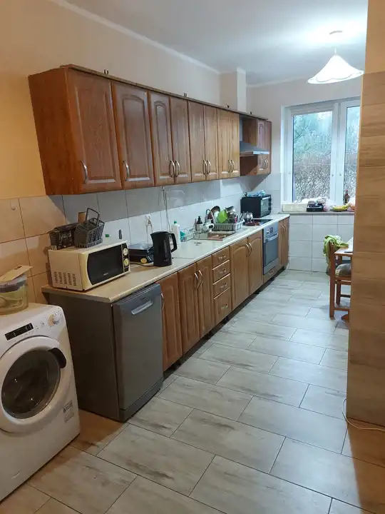 Przedstawiam ofertę wynajmu 3 kwater w tym samym standardzie każda. Każda z kawalerek doposażona jest w indywidualną łazienkę. Wspólna dla siedmiu mieszkań jest duża kuchnia z całym AGD. Każde mieszkanie doposażone w kanapę, komodę, szafę i stolik, możliwość doposażenia w krzesła.