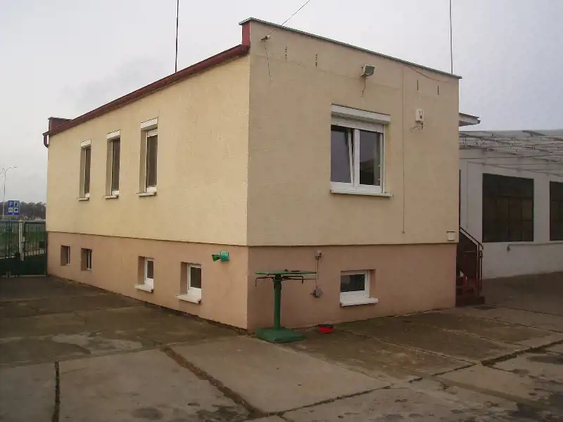 wiata 70 m2 , pomieszczenia biurowe 50 m2 , pomieszczenia socjalne i kotłownia 50 m2 . Wszystko po kapitalnym remoncie , ładnie zagospodarowana działka .