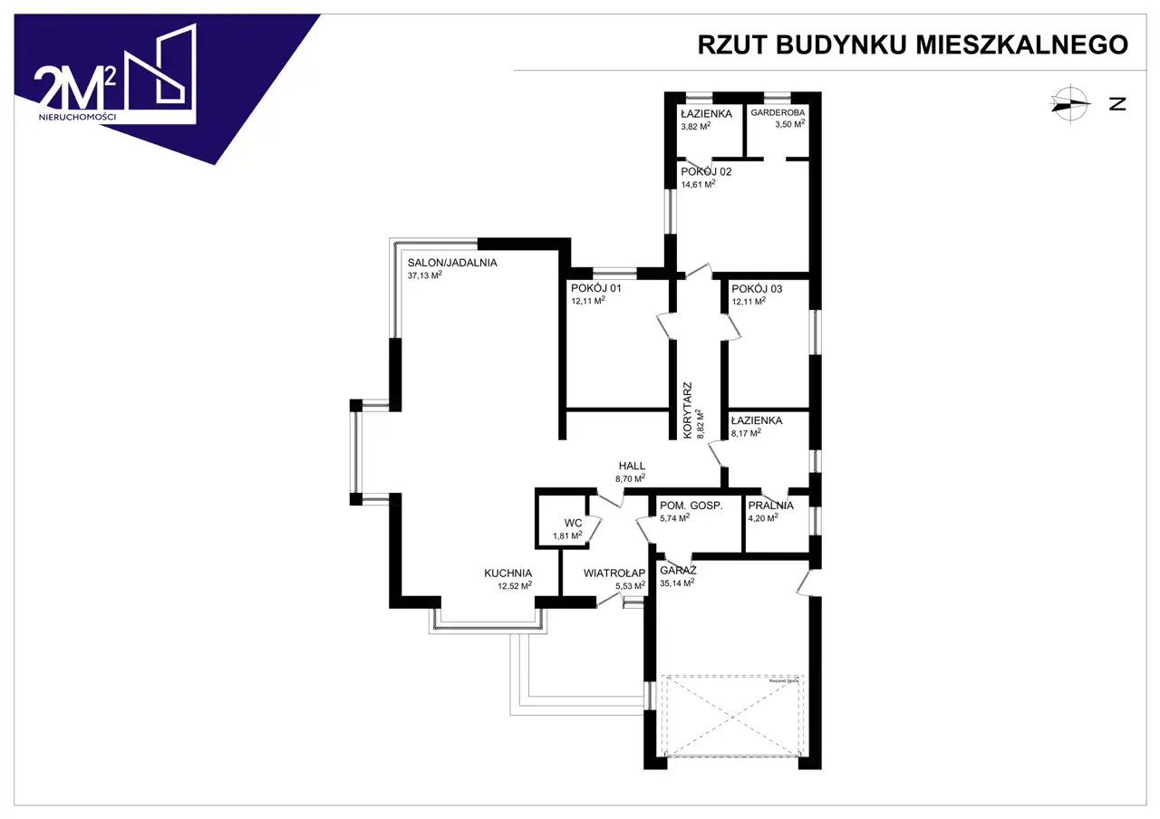 Przemyślany układ pomieszczeń zapewnia wygodę, a możliwość adaptacji poddasza pozwala na uzyskanie dodatkowych trzech pokoi. Duży garaż dwustanowiskowy zwiększa komfort codziennego użytkowania.