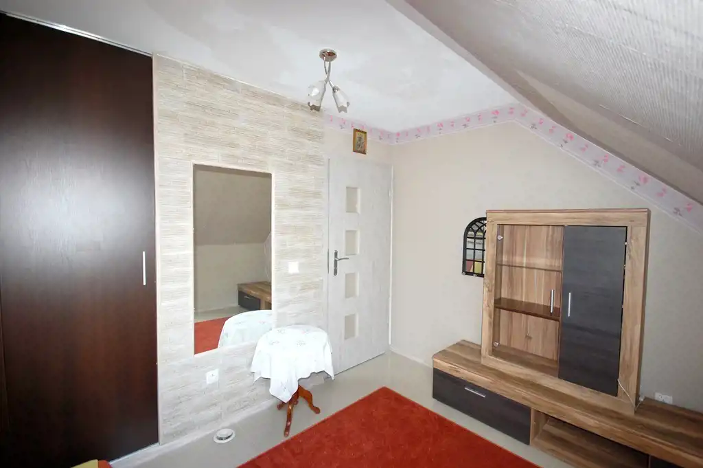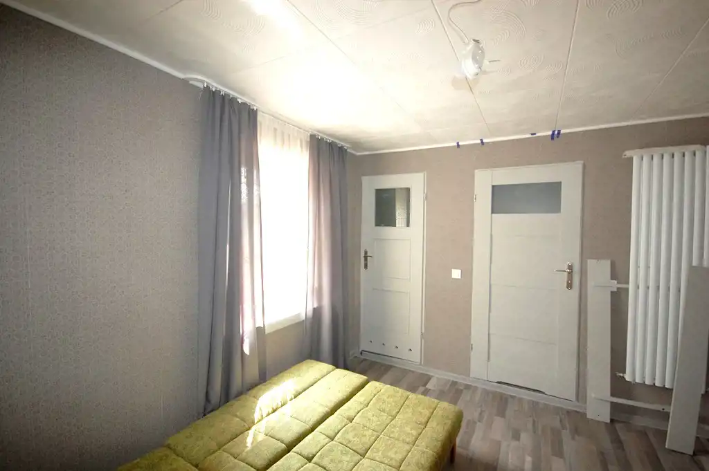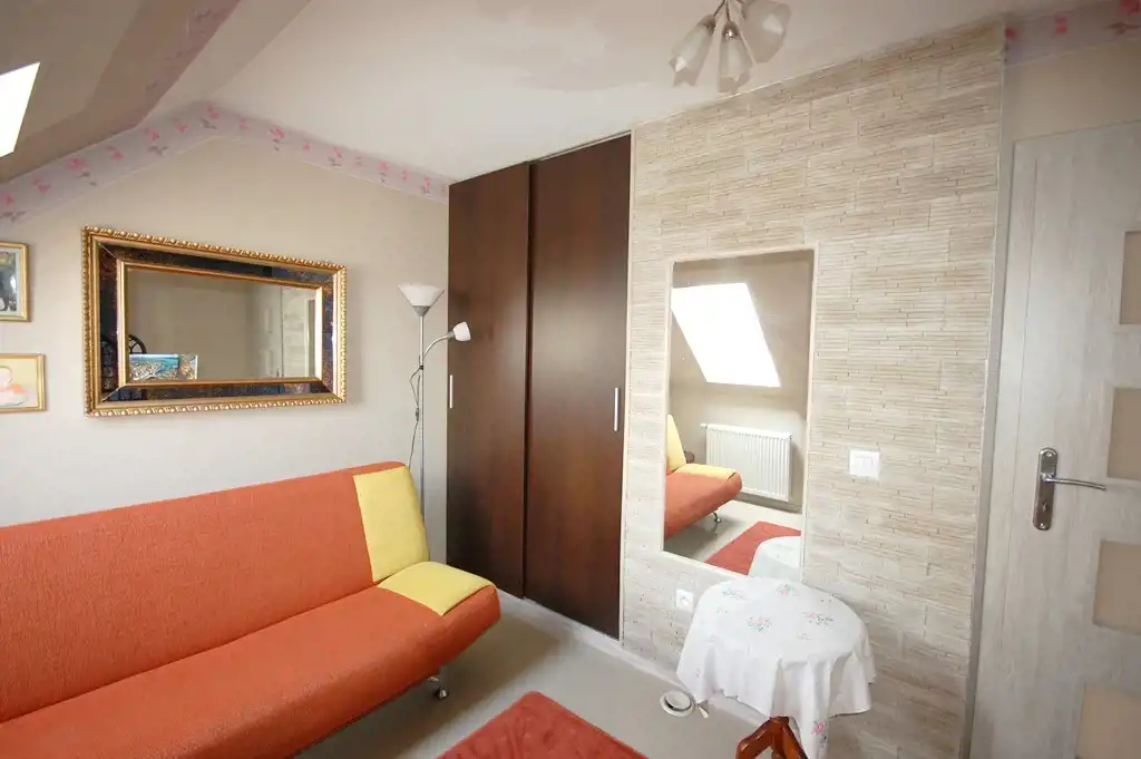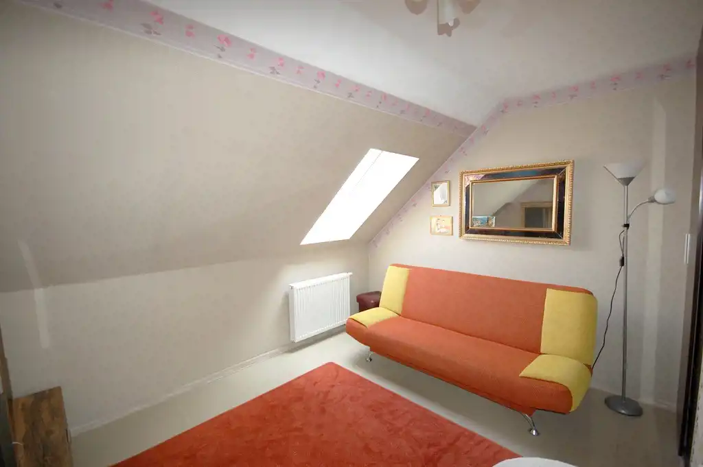 - sypialnia ok 13,40 m2, (użytkowa ok 10,80 m2), na podłodze terakota, ściany tapeta + panele ścienne, okno połaciowe.