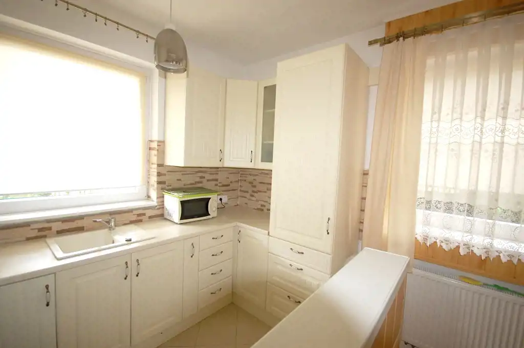 - kuchnia ok 8,70 m2 (użytkowa ok 6,50 m2), podłoga gres, tapeta zmywalna, zabudowa meblowa+zmywarka Siemens w cenie.