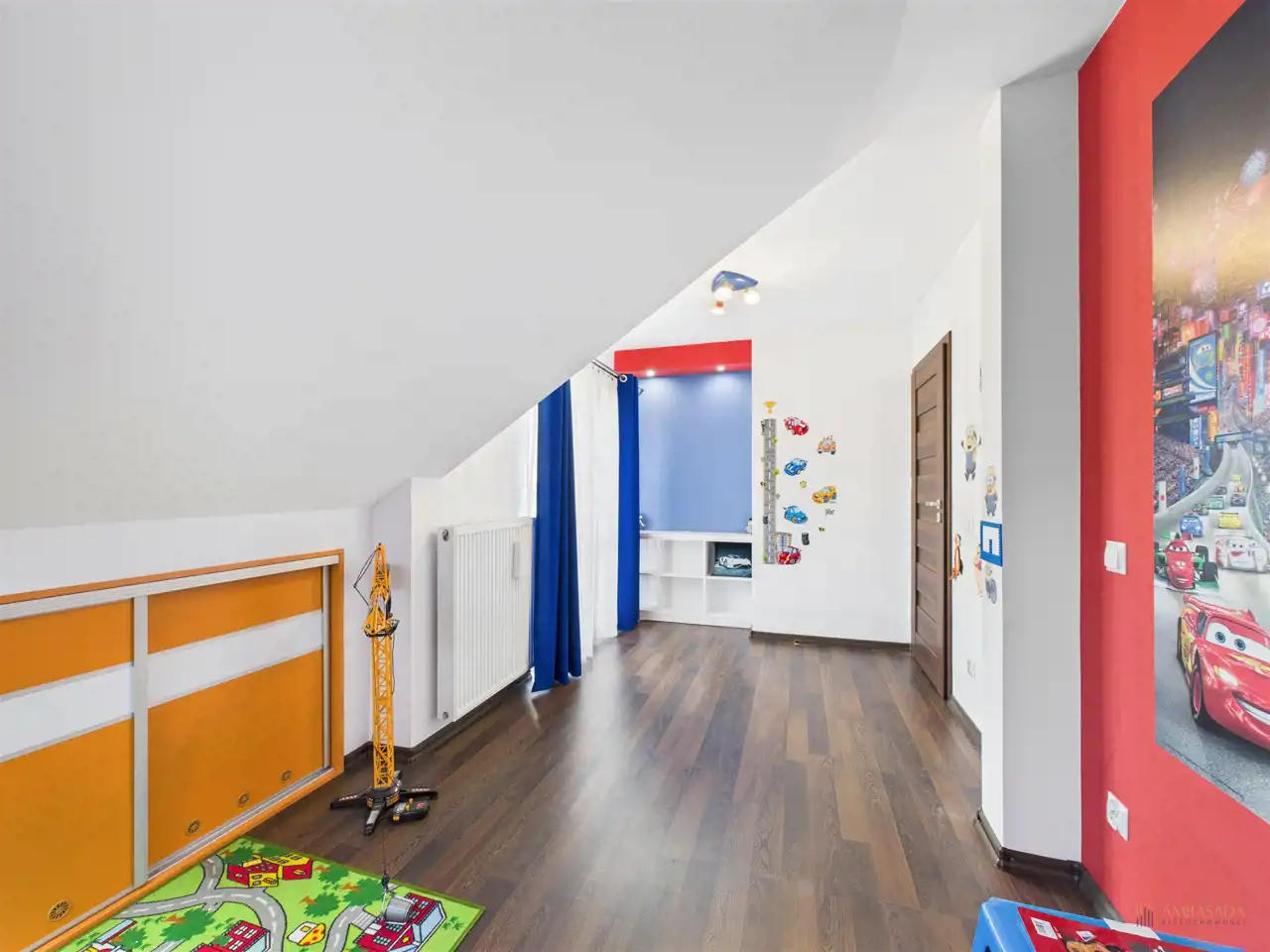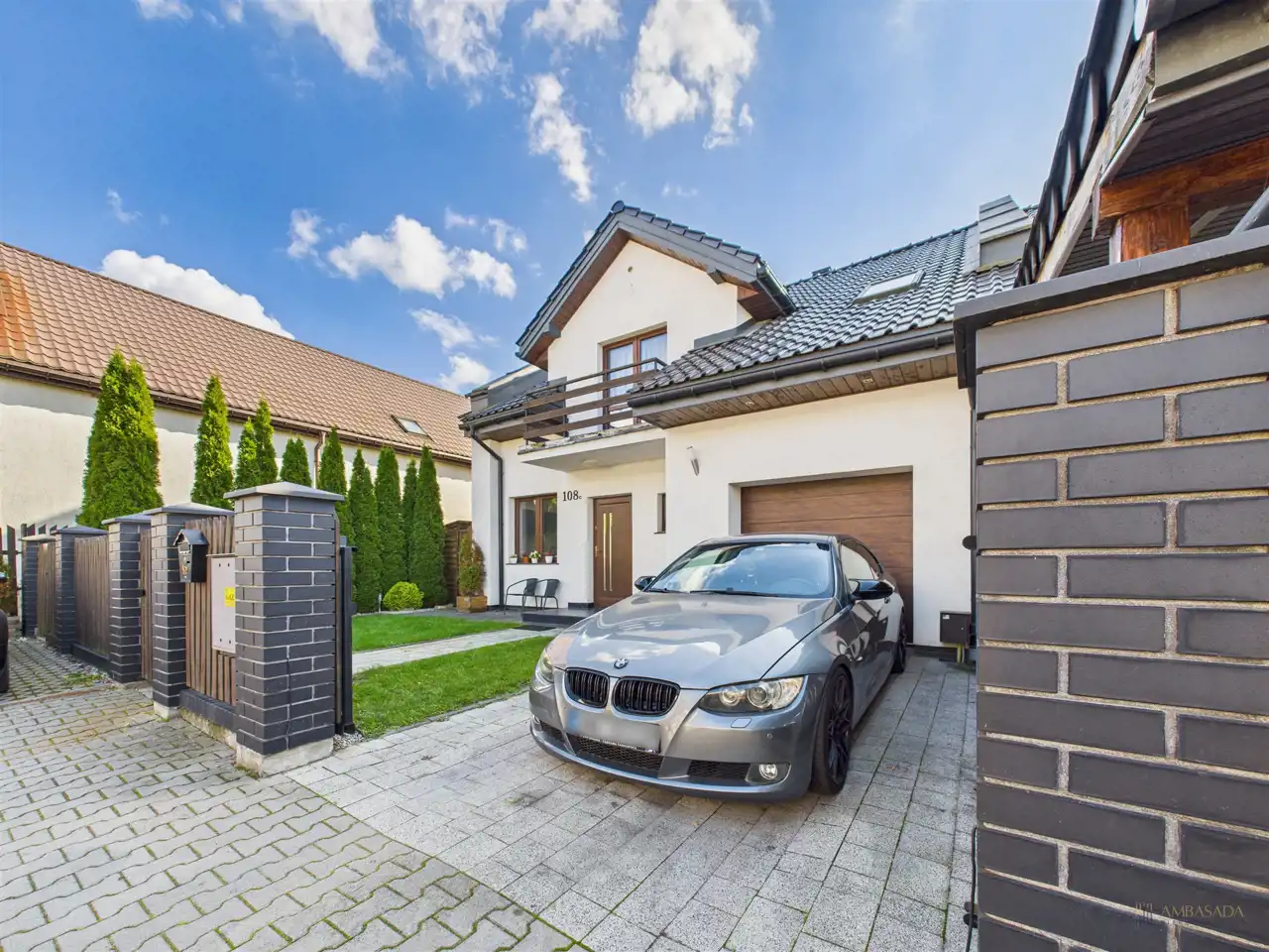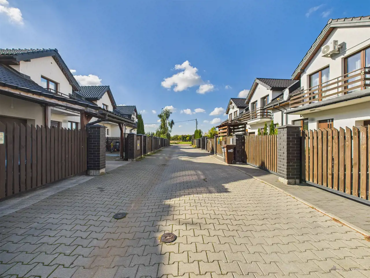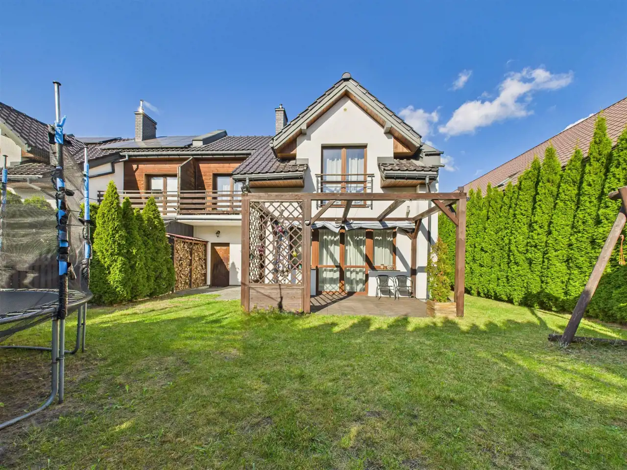 Dom z 2016 roku został solidnie wybudowany w technologii murowanej (czerwona cegła), co zapewnia trwałość i bardzo dobrą izolację cieplną. Powierzchnia całkowita domu wynosi 137,23 m² (użytkowa około 115 m²). Znajduje się na działce o powierzchni 338 m², z wygodnym, prywatnym wjazdem na kameralne osiedle. To ostatni, skrajny segment, więc masz tu poczucie prywatności – ogród odgrodzony jest wysokimi tujami, które tworzą przyjemną, zieloną ścianę.