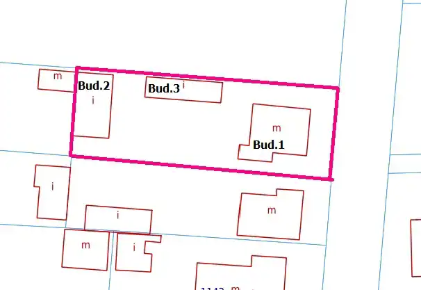 Nieruchomość to działka o powierzchni 839m2 o regularnym prostokątnym kształcie (17x50m), na której posadowione są: