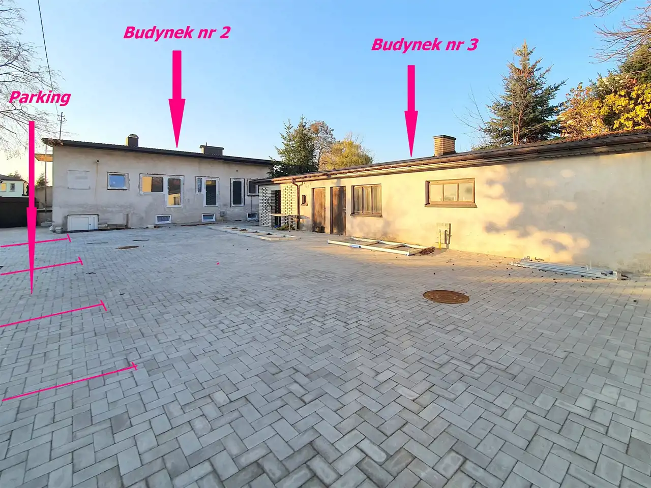 - duży wewnętrzy parking wyłożony kostką, 8 miejsc postojowych!, możliwość wykonania dodatkowego parkingu od strony ulicy