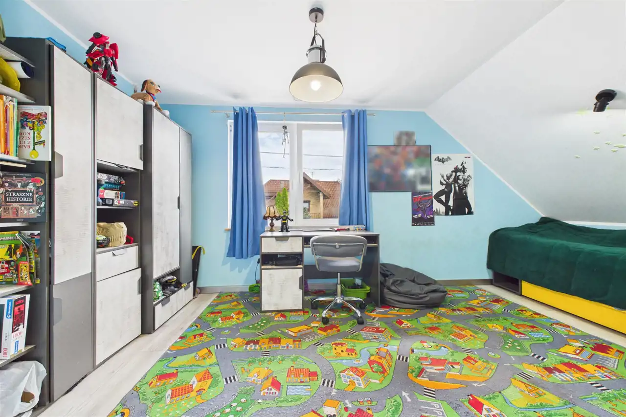 Media: pełne uzbrojenie – prąd, woda, kanalizacja miejska plus studnia, ogrzewanie gazowe -podłogowe