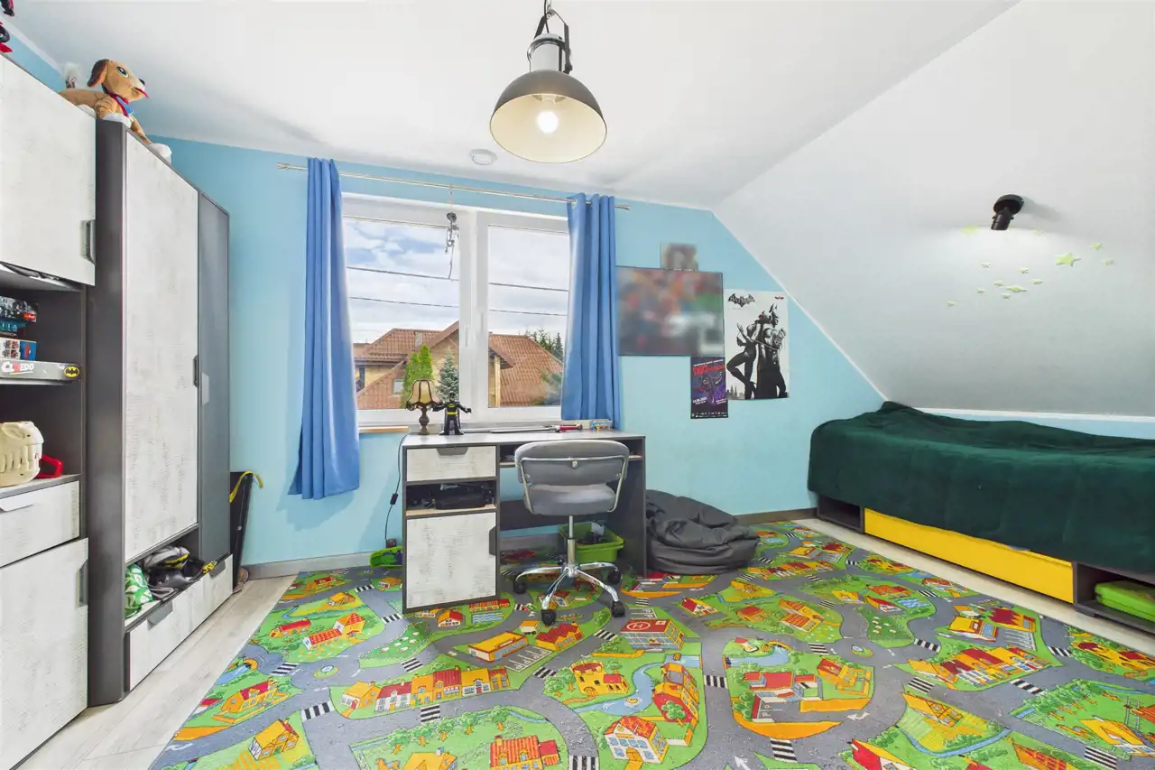 Nieruchomość zaprojektowana z myślą o komforcie i funkcjonalności dla rodziny. Wyróżnia ją prosta, nowoczesna forma, przeszklenia oraz czytelny podział stref dziennej i nocnej.