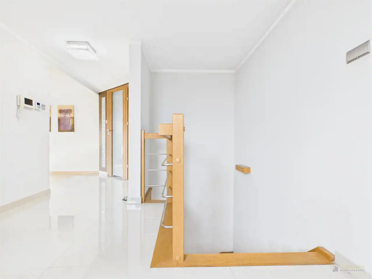 Dom wyposażony jest w centralę alarmową oraz wideodomofony. W sypialni na najwyższym piętrze zamontowano klimatyzację. Bramy garażowe otwierane są na pilota, a w piwnicy okna posiadają rolety antywłamaniowe.