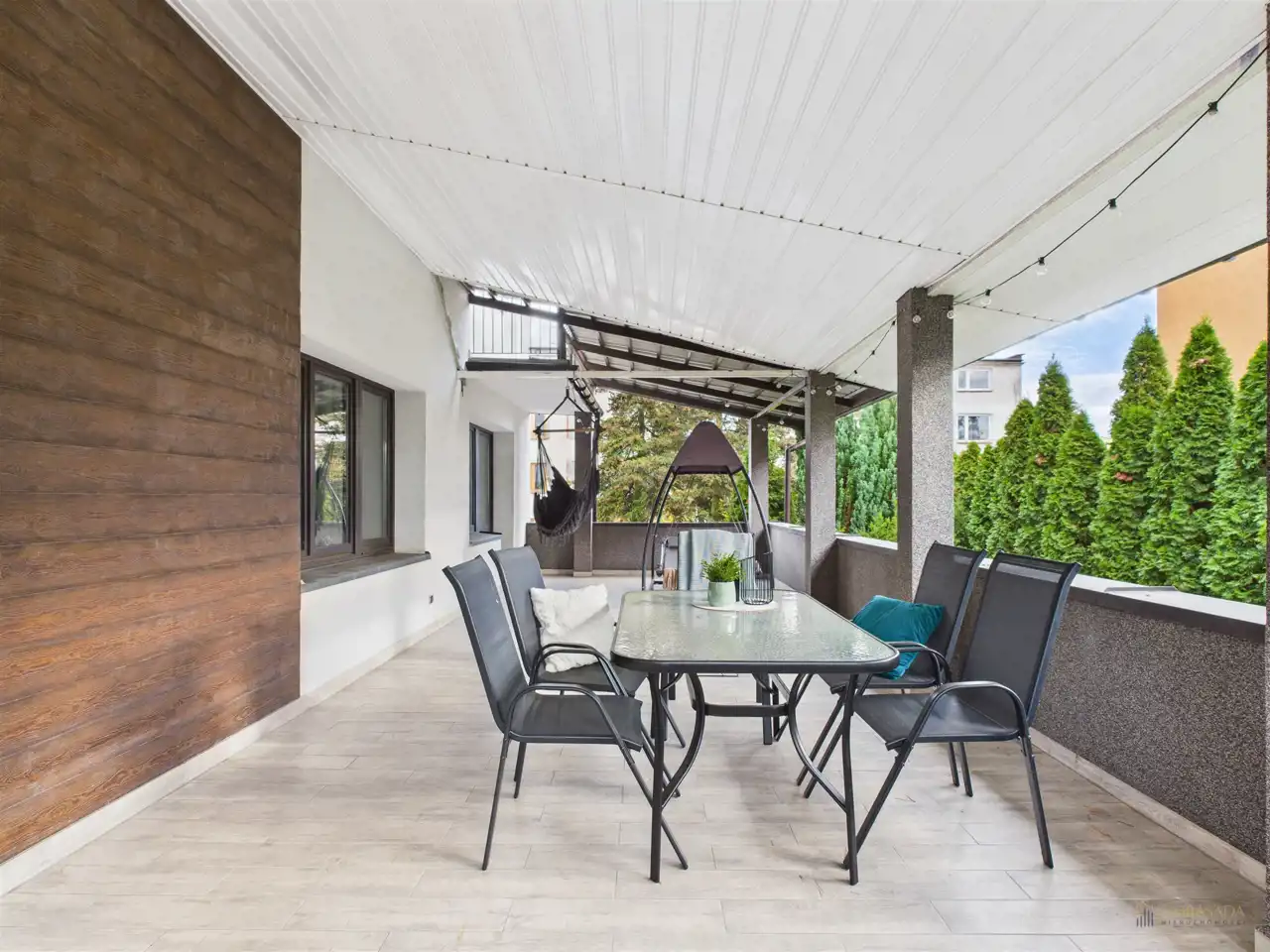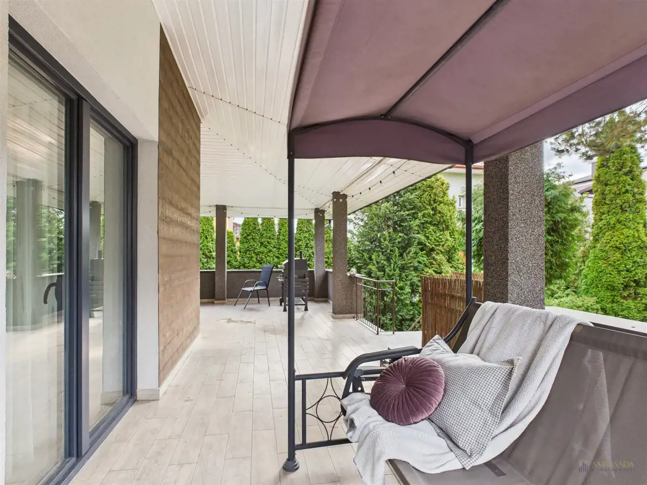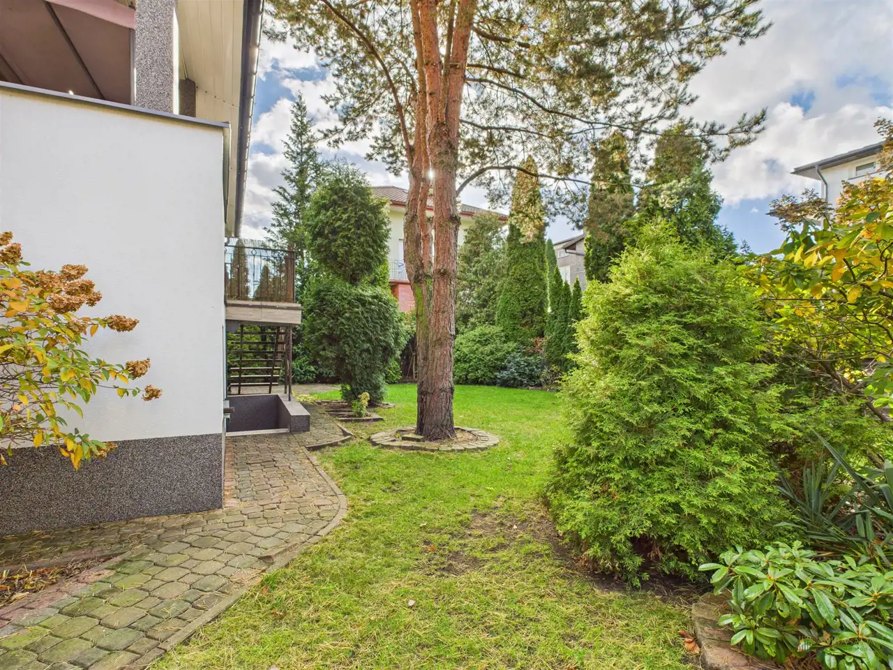 Działka o powierzchni 541 m² jest w pełni zagospodarowana i pozwala cieszyć się zielenią na co dzień. Z dużego, około 75-metrowego tarasu prowadzi zejście bezpośrednio do ogrodu.