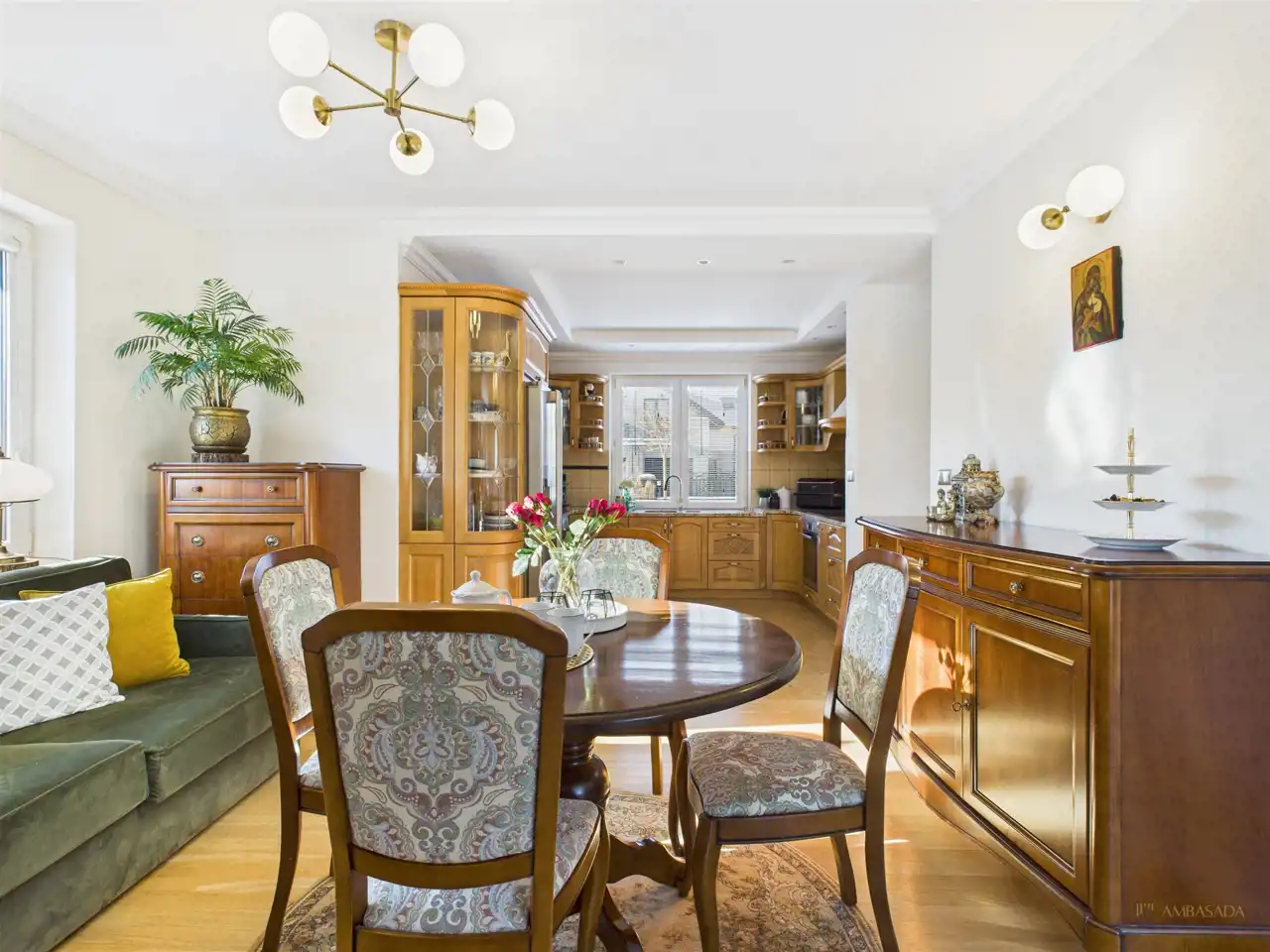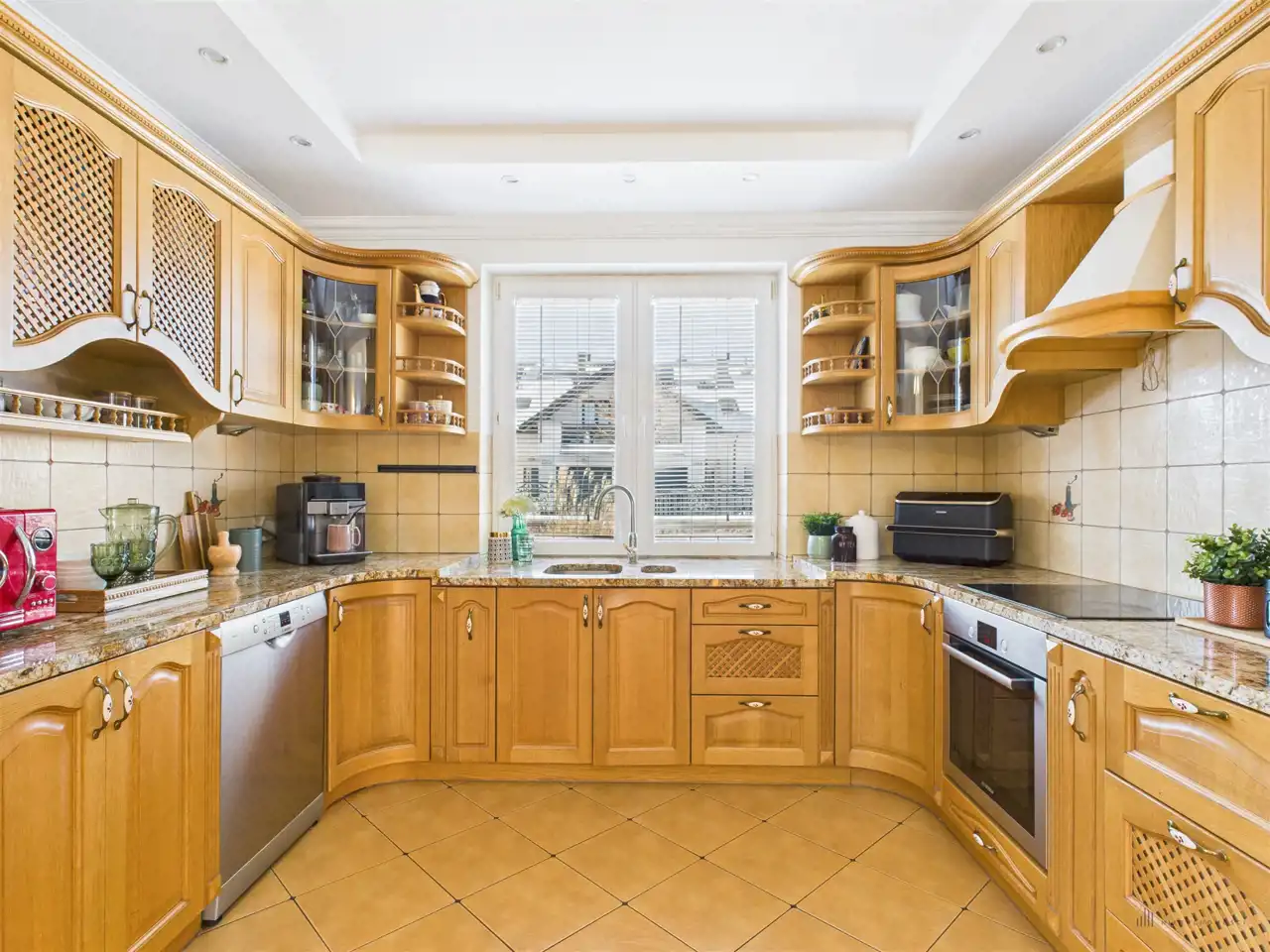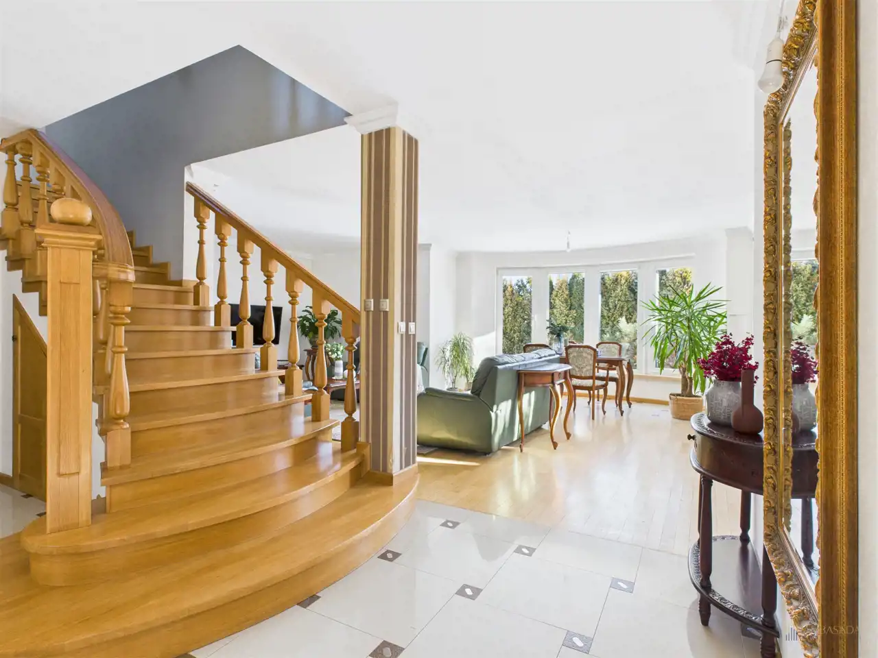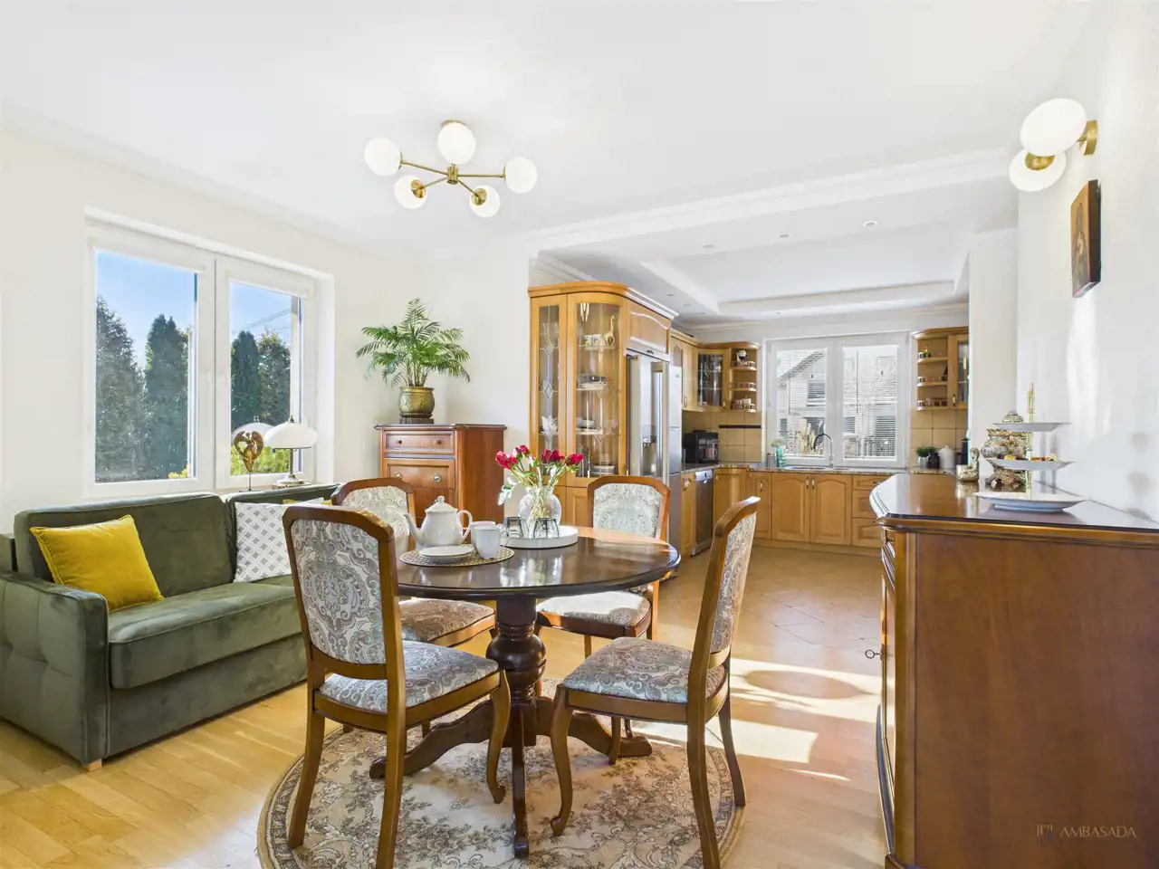 Wnętrza wykończone w klasycznym stylu, z solidnych i naturalnych materiałów: dębowe schody oraz parkiet na parterze i piętrze, zabudowy w wiatrołapie i kuchni z naturalnego drewna. Odświeżenia wymagają jedynie łazienki, które w bardziej nowoczesnym wydaniu podkreślą charakter domu.